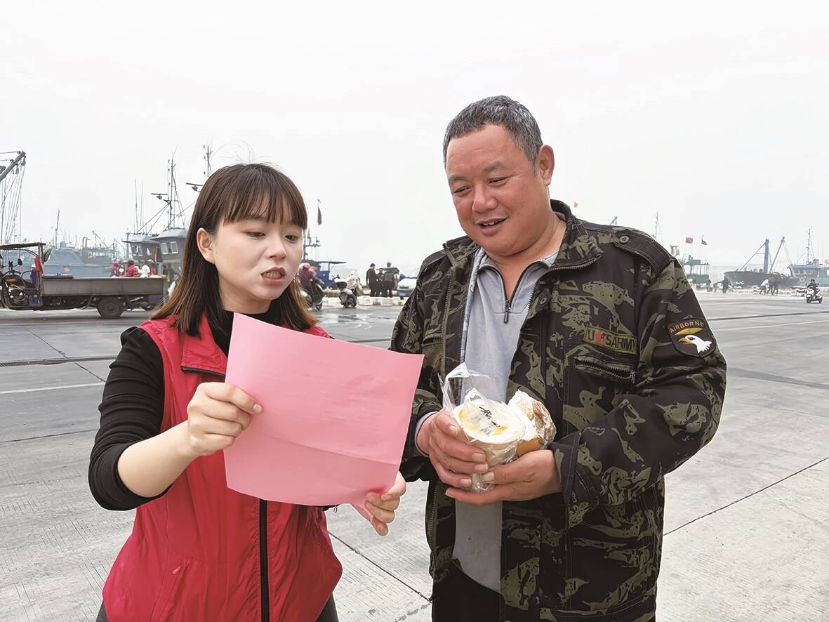 活动现场,巾帼志愿者与社工们早早忙碌起来,将一份份热气腾腾的早餐送到早起劳作的渔业工作者手中。借着互动的契机,志愿者向渔业工作者分发《文明祭祀倡议书》,耐心讲解文明祭祀的重要意义,细致劝导大家摒弃焚香烧纸、燃放鞭炮等传统祭祀陋习,让清明祭扫更文明,共同守护辖区绿水青山。