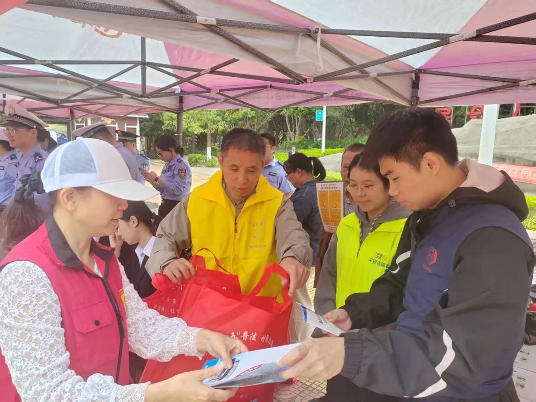活动现场,综治中心工作人员向过往群众详细介绍综治中心的具体位置和矛盾纠纷调解职能,并耐心解答群众提出的问题。此外,现场还通过设置宣传展板、现场讲解、游戏互动、发放宣传单及宣传品等方式向群众宣传禁毒、反电信诈骗、交通安全、非法集资、合法信访、平安建设等知识。