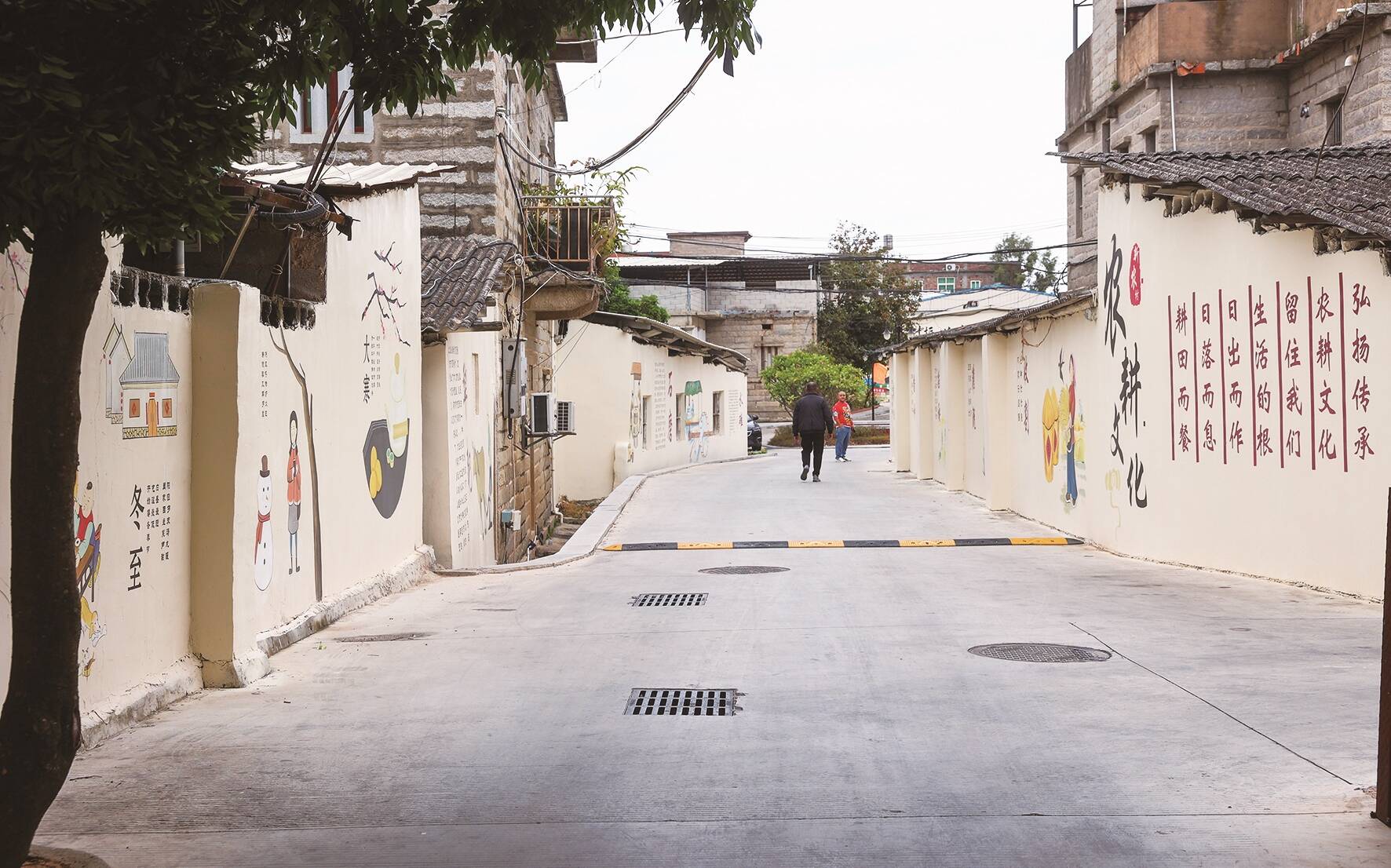 11月11日,记者走进宝盖镇杆头村发现,村中通道两侧房屋墙面与围墙摇身变成了一面面文化墙。精心设计的墙绘,让整条村道成为村落的新景观。这就是该村美丽乡村建设的新动作。