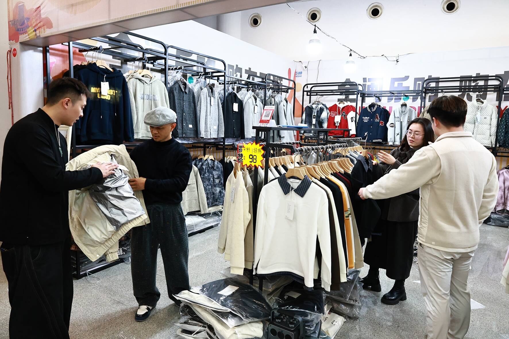 1月6日,记者走访我市多处服装卖场,各商家纷纷推出“年终特惠”“一件也是批发价”等促销活动,货架上冬装、新春款服装琳琅满目,吸引了大批消费者。