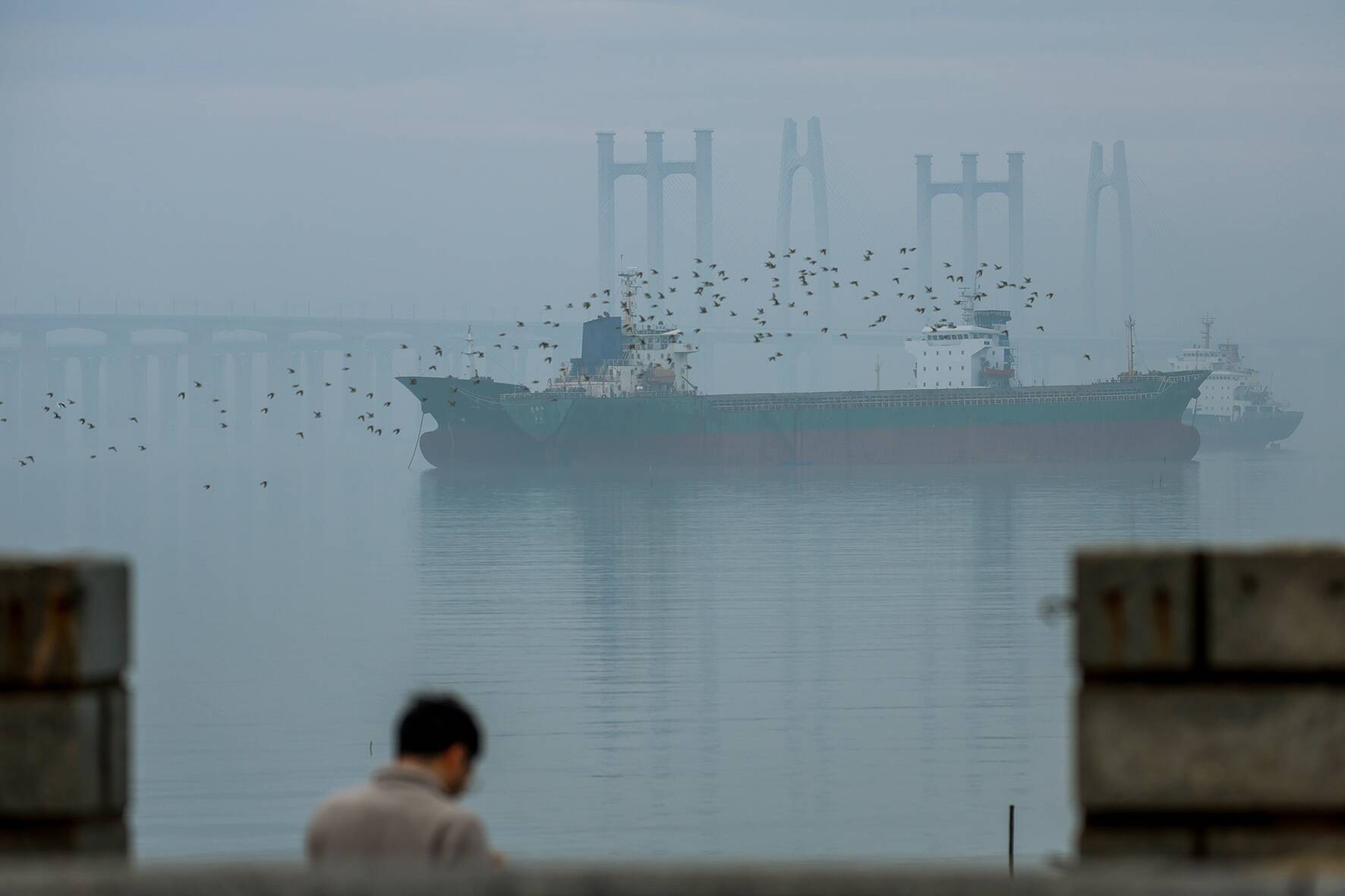 2月27日上午,受平流雾影响,我市锦江外线海域被一层轻纱般的雾气笼罩,远处的泉州湾跨海大桥在薄雾中若隐若现,宛如仙境。在锦江外线的步行道上,不少市民驻足拍照,记录下这难得一见的景象。海面上,几艘货轮静泊于水中央,成群的水鸟在波光粼粼的水面上低飞,与远处朦胧的桥塔相映成趣。(记者 颜华杰)
