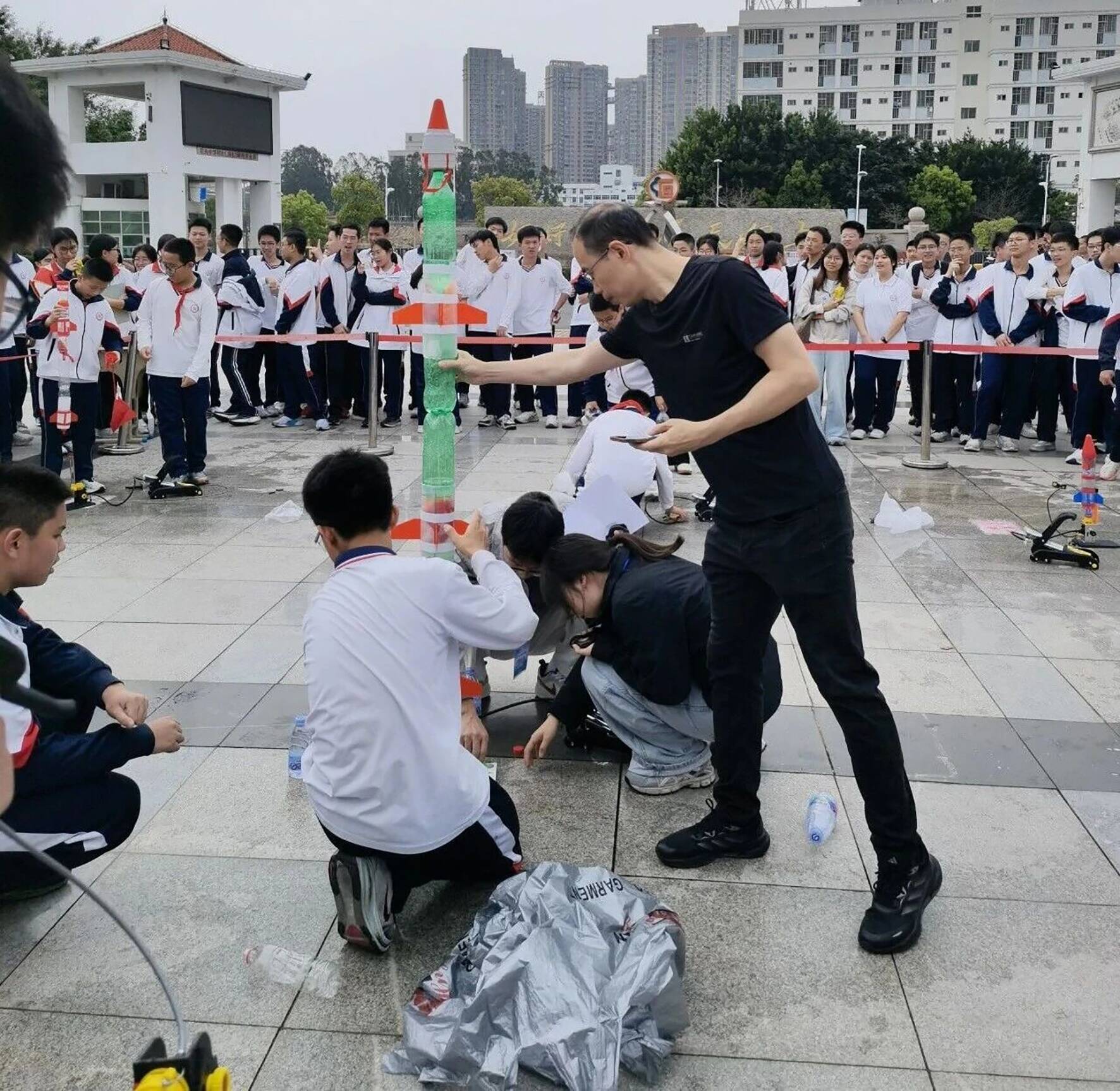 日前,石狮市石光中学“穿越星空,梦想启航”水火箭留空赛在该校文化广场举行,为全校师生呈现了一场充满科技魅力与青春活力的盛会。