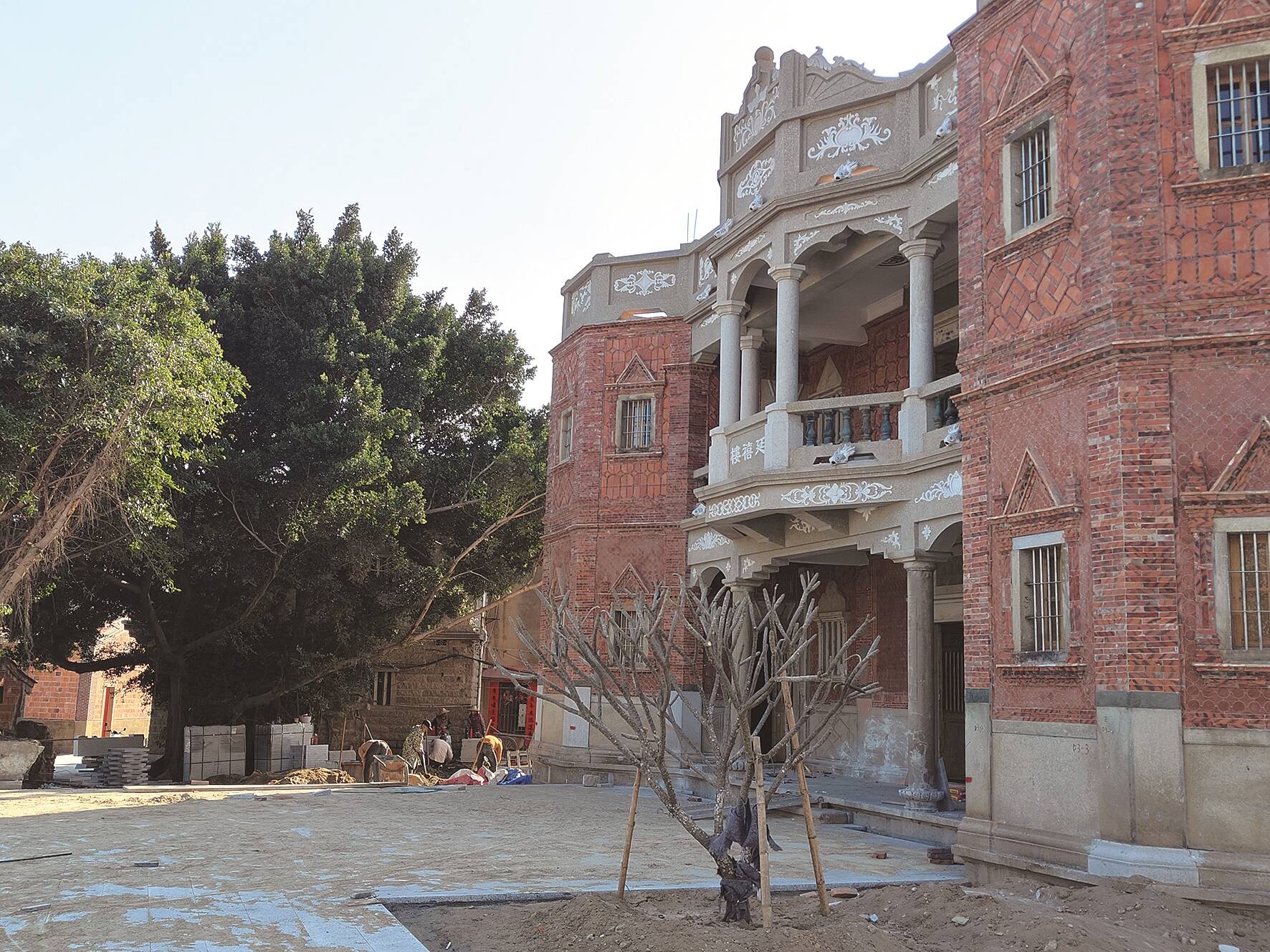 随着二期和平路、后花街的改造提升工程进入尾声,今年八卦街的提升重点集中在宝岛路口的相关配套项目。其中,A1地块正如火如荼推进宋元海丝宴沉浸式文化中心建设,A2地块主要是对两个水塘进行疏浚清淤,并同步对周边景观进行改造提升;B地块的两栋功能楼已先期建成;占地面积约4.3亩的C地块,则是对南洋风格的“谦记楼”,以及紧挨着的一栋红砖古厝进行修缮加固,同时用大仑片区拆迁时的旧构件,将一座番仔楼迁建至此,实现“修旧如旧”、焕发新生。去年,“谦记楼”和红砖古厝已先期完成修缮提升,前者同时打造为石狮首座“侨批馆”,让这处曾经的“信局”以纪念馆的形式“重生”;番仔楼“延禧楼”目前主体也基本完工。