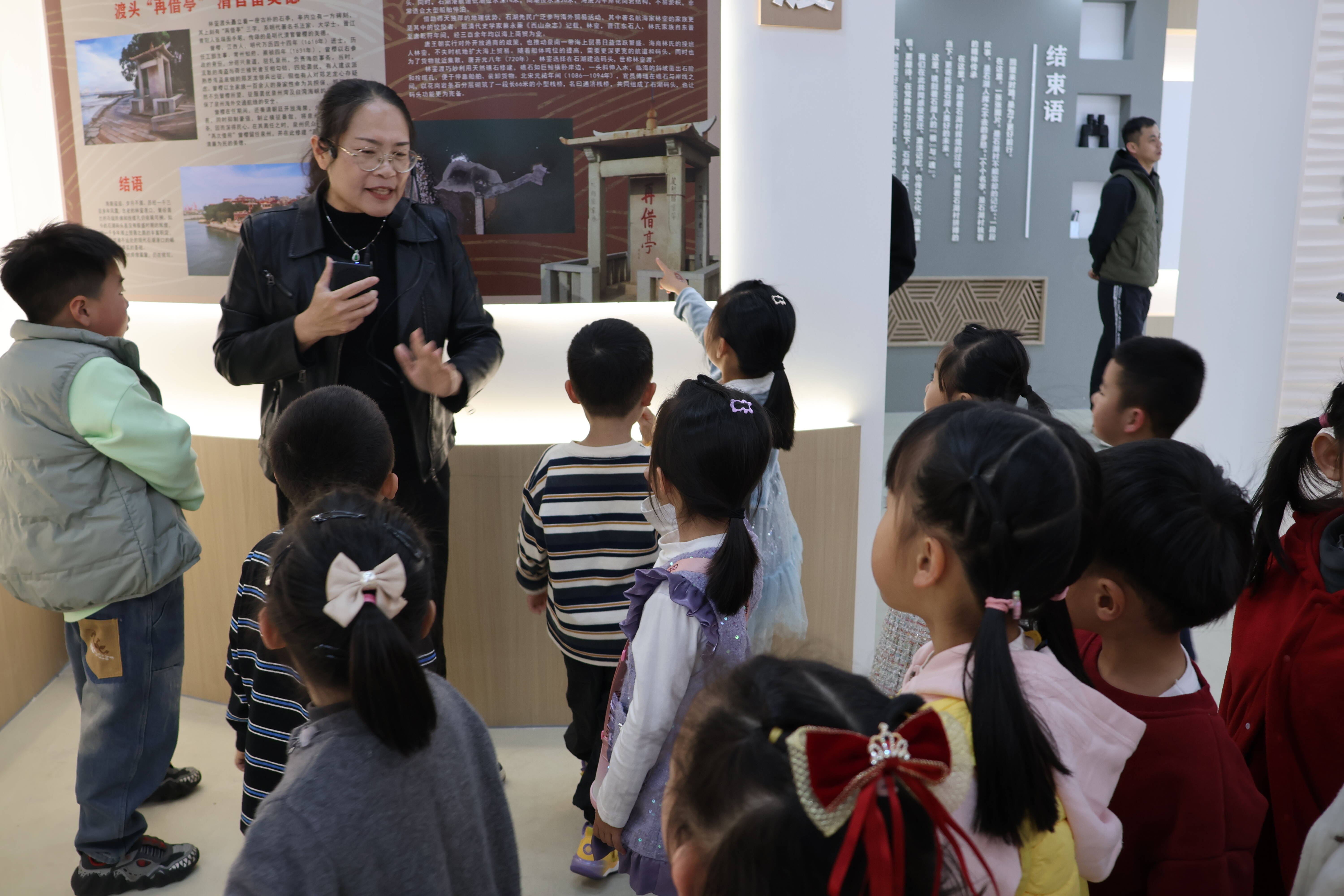 在村史馆,小朋友们近距离接触竹排、机帆船、集装箱货轮等作业运输工具模型,在老师讲解下,了解石湖航运业的发展变迁,感受石湖先民以海为生、勇闯四方的拼搏精神;在林銮渡,小朋友们认真聆听再借亭的故事,并走上古渡头,实地感受海丝航运的沧桑巨变。