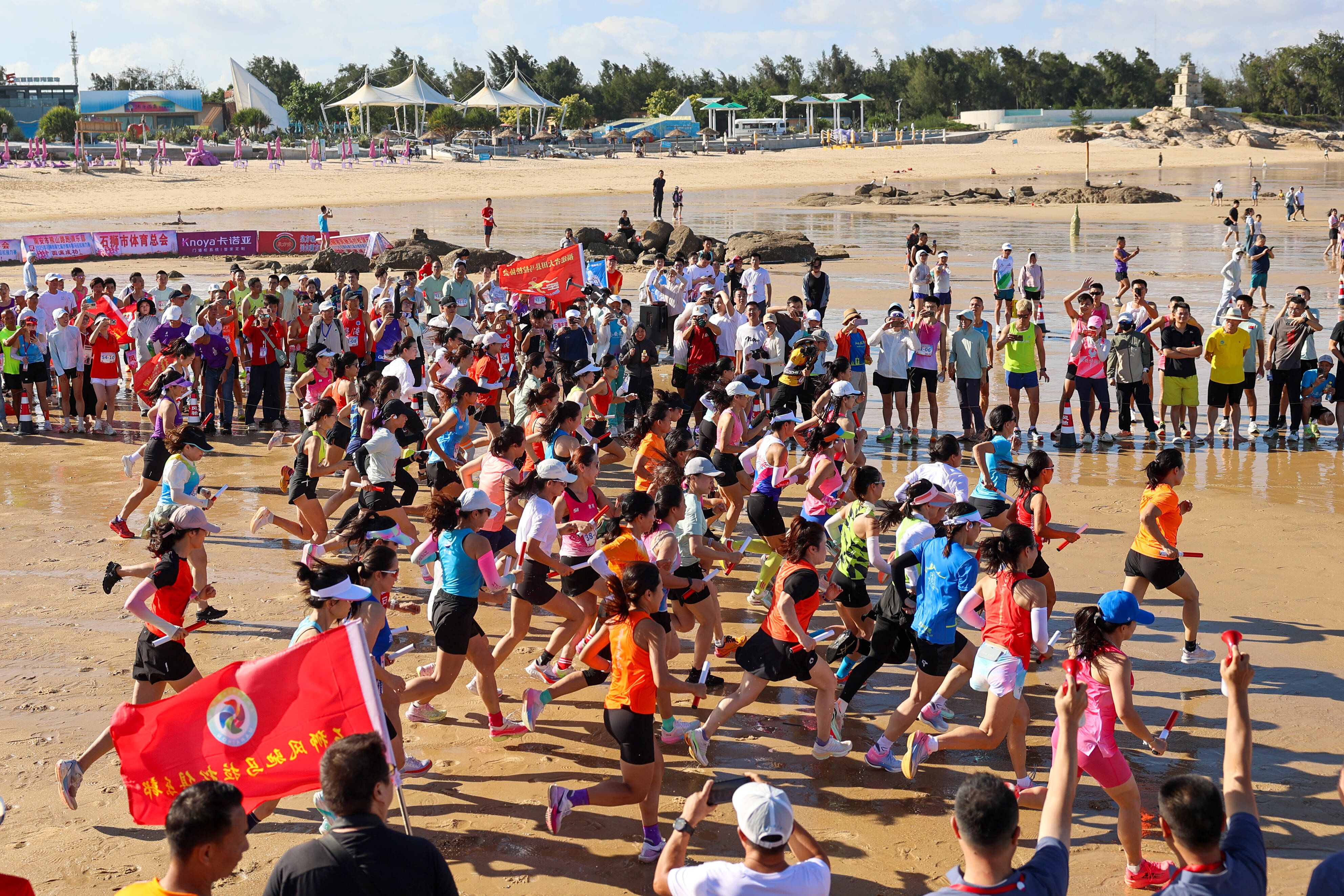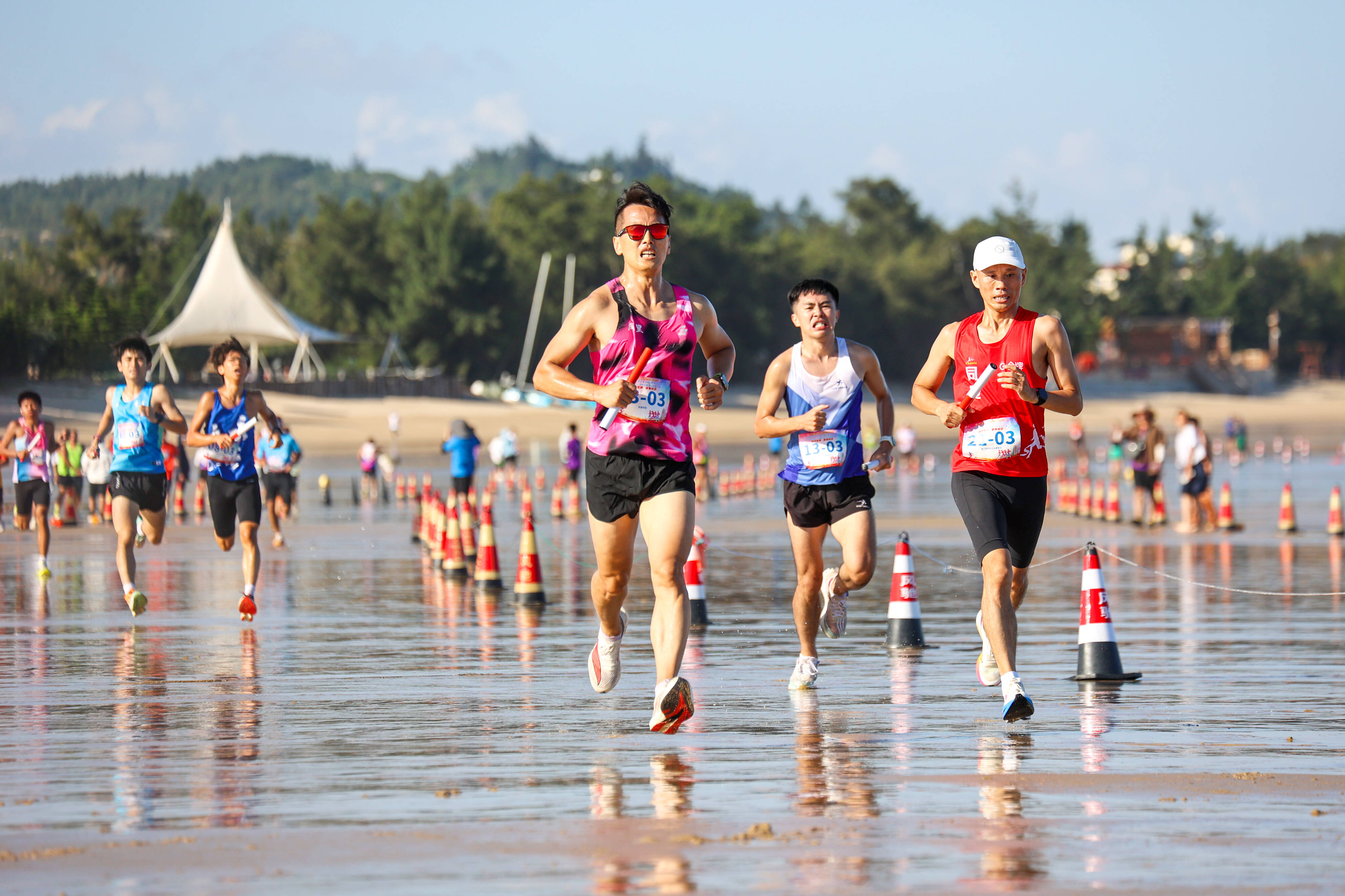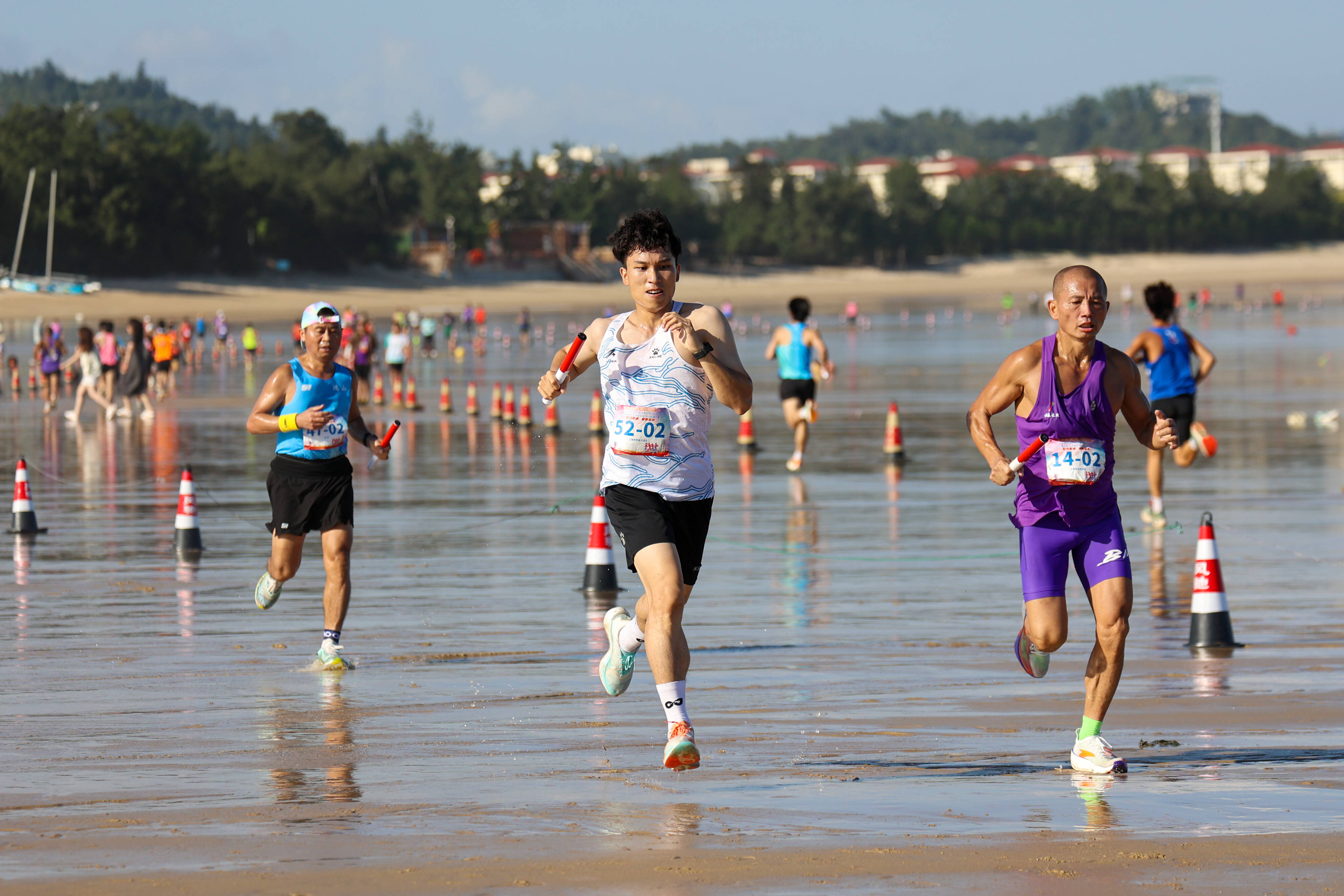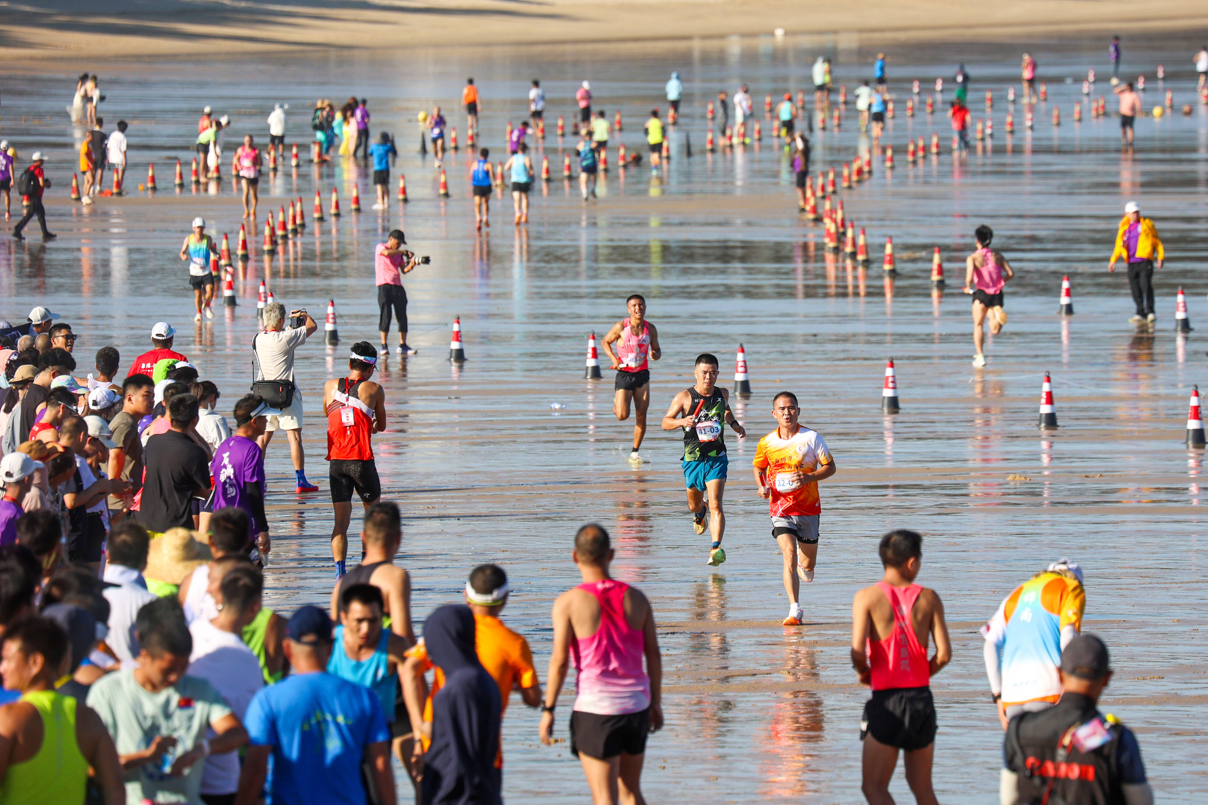 随着发令枪响,参赛运动员迈着矫健的步伐冲向赛道,沙滩上瞬间扬起细碎的沙粒,欢呼声、加油声此起彼伏。选手们一边感受海风的凉爽,一边欣赏碧海蓝天,赛道旁的观众也不时举起手机记录精彩瞬间,为跑者们呐喊助威。