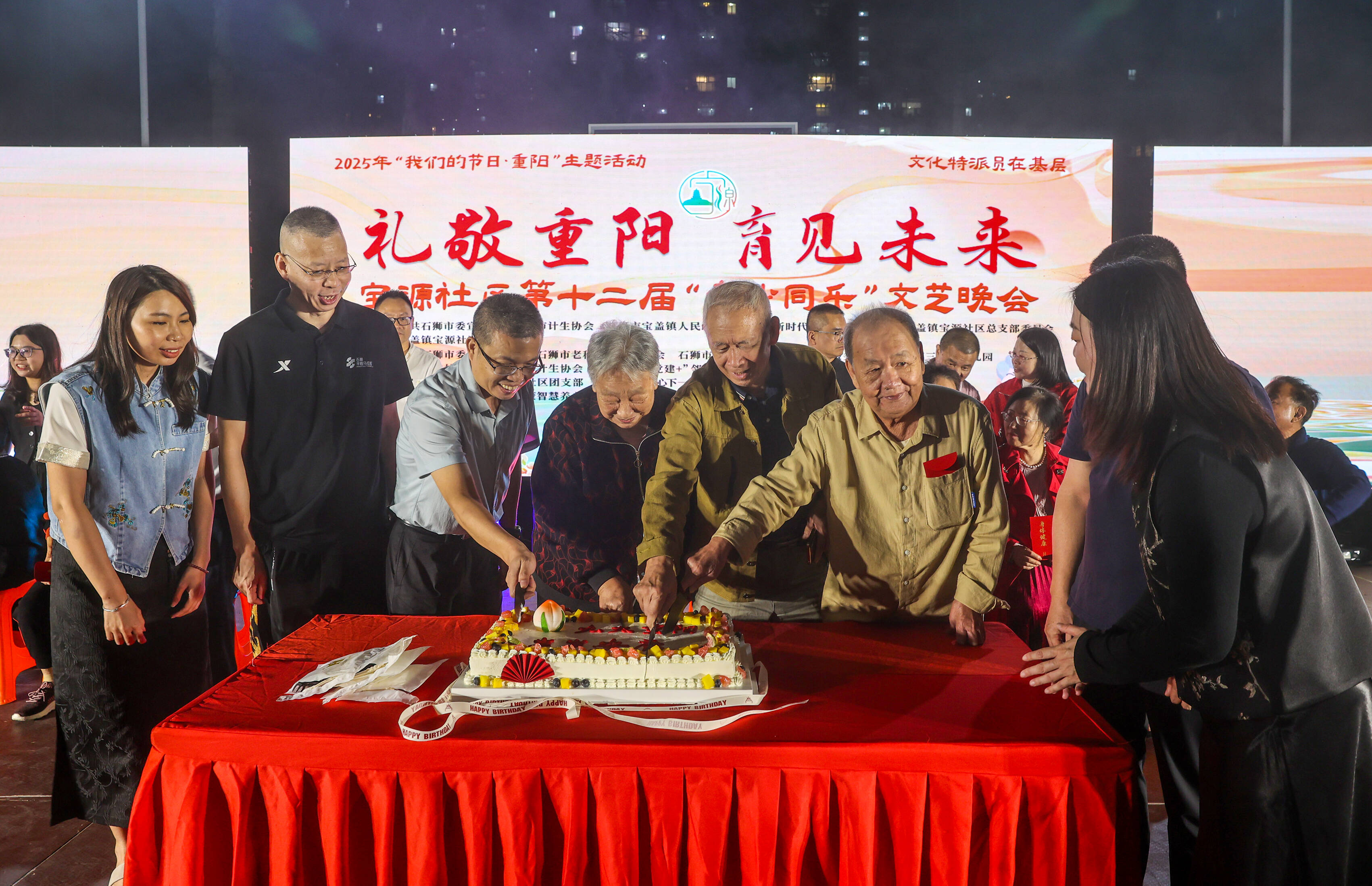 10月31日晚,宝盖镇宝源社区邻里篮球场变成了一个大舞台。以“礼敬重阳 ‘育’见未来”为主题的宝源社区第十二届“老少同乐”文艺晚会在这里精彩上演,吸引了众多居民走出家门,共享这一美好时刻。
