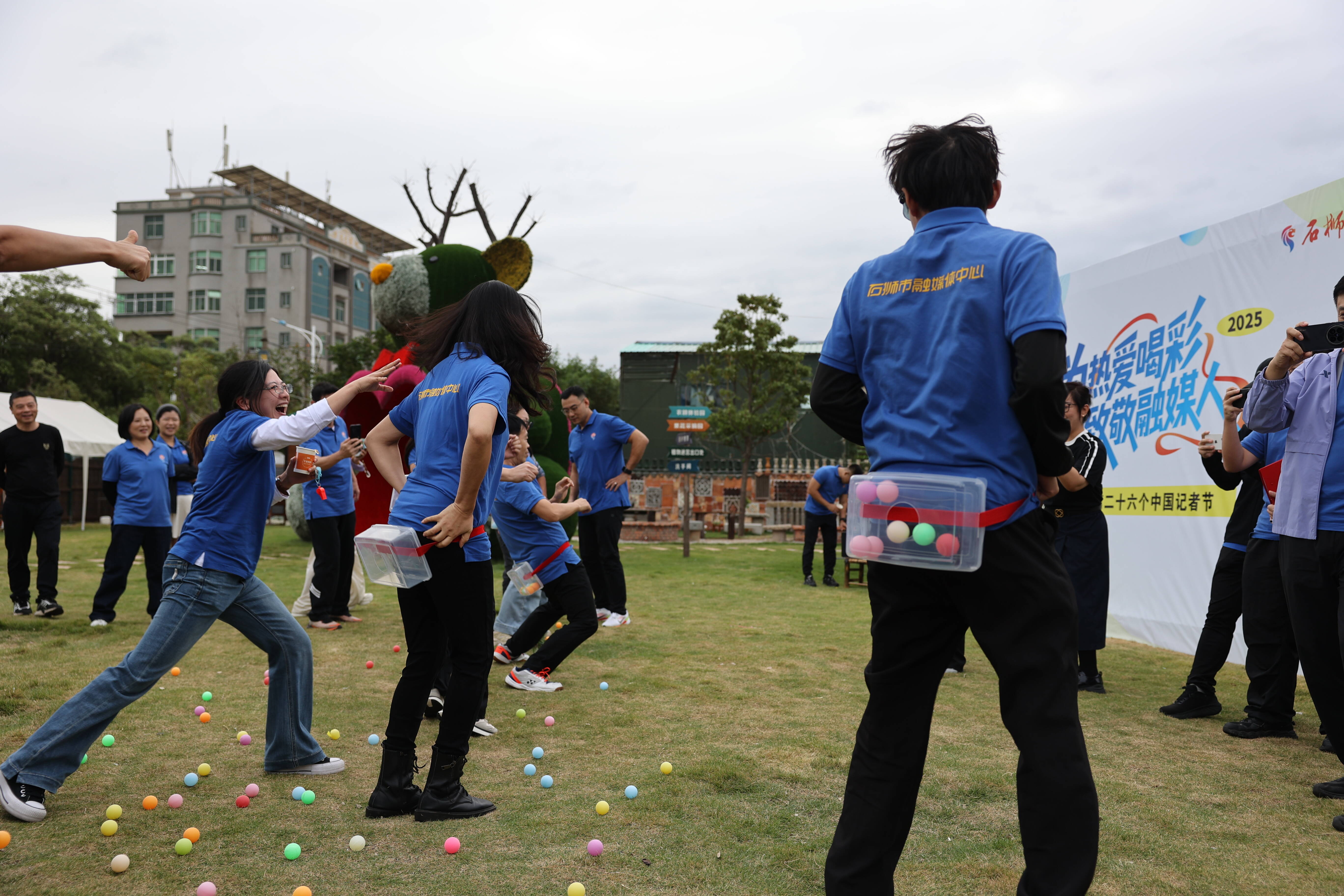 11月13日,石狮市融媒体中心工会在永宁镇千玺牧野举办“为热爱喝彩 致敬融媒人”暨庆祝第26个中国记者节团建活动。来自中心各部门的员工欢聚一堂,组成5支队伍,通过激烈的拔河比赛与趣味游戏展现协作精神,共同度过了专属融媒人的欢乐时光。
