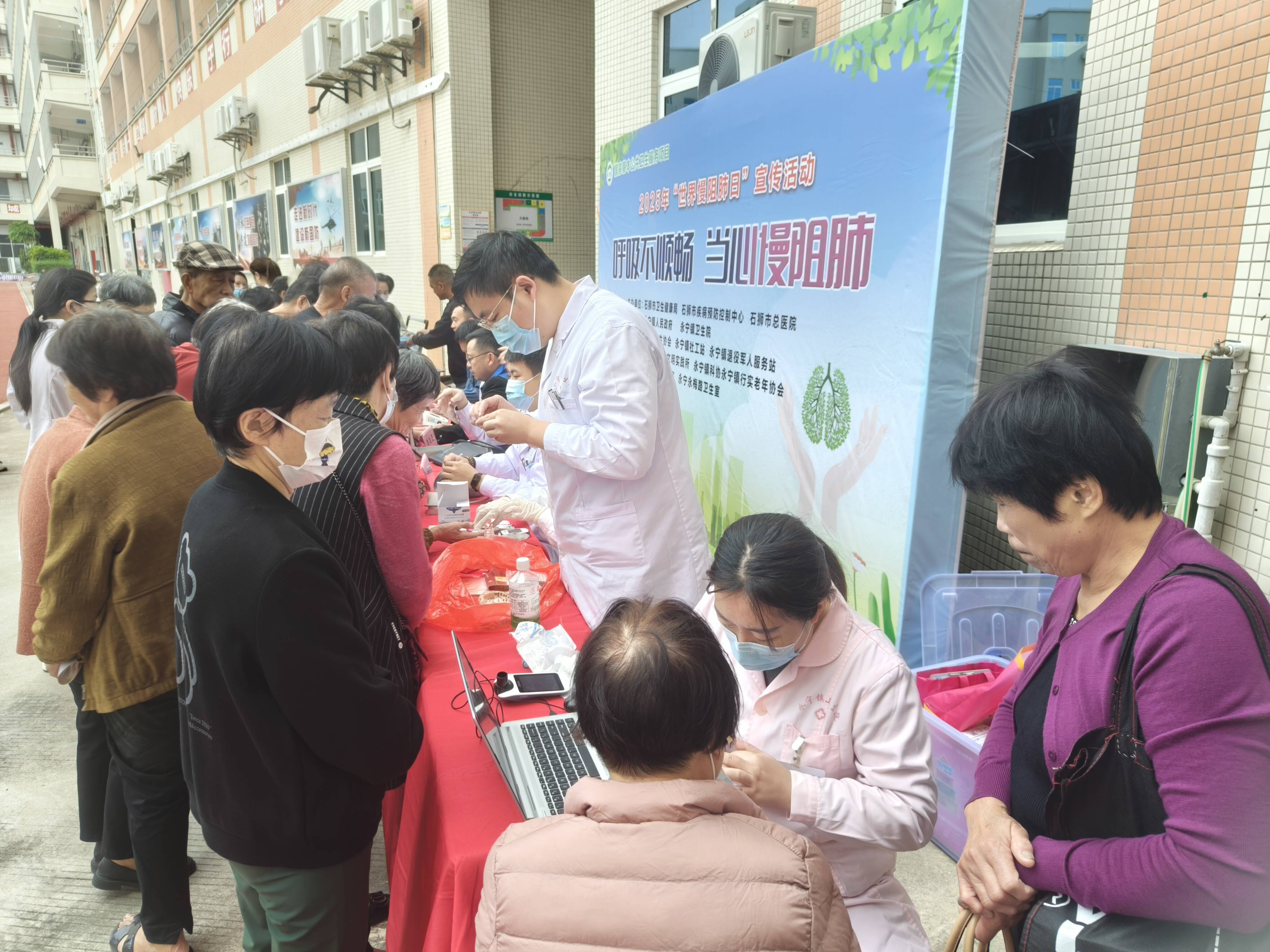 在健康监测区,医护人员为居民免费测量血压、血糖,耐心询问身体状况,针对测量结果给出饮食、运动建议,让居民了解自身健康状况。在肺功能检查区,医护人员借助专业设备为居民进行检测,详细讲解肺功能指标的含义,科普慢阻肺的早期症状、高危因素及预防措施,引导居民养成良好的生活习惯,做到早发现、早干预、早治疗。