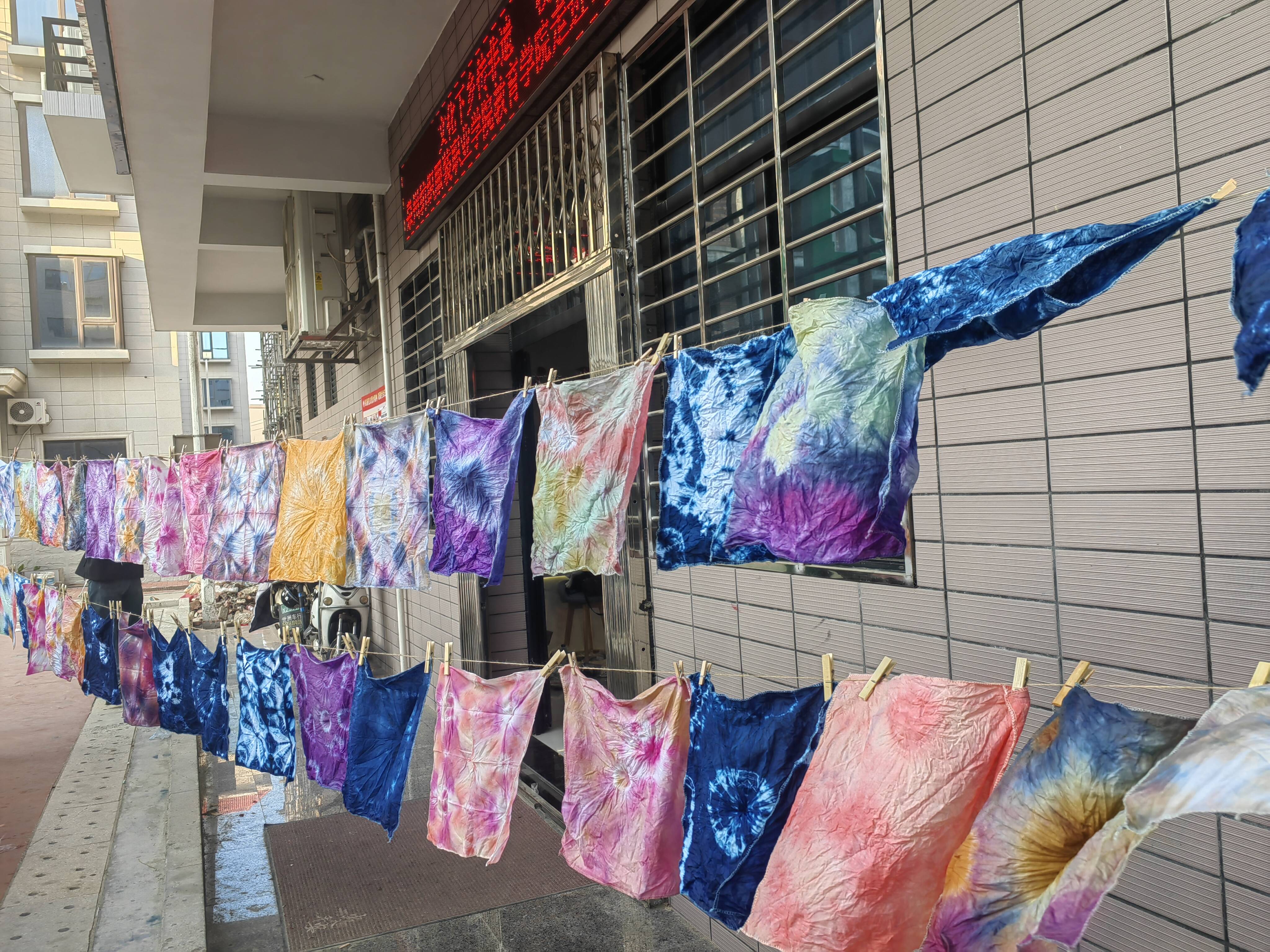 11月22日下午,锦江村公共服务中心内色彩斑斓、欢声笑语,一场由锦江村“党建+”邻里中心与泉州纺织服装职业学院联合举办的“遇见扎染”非遗手工体验课在此开展,吸引了辖区30名小学生积极参与。