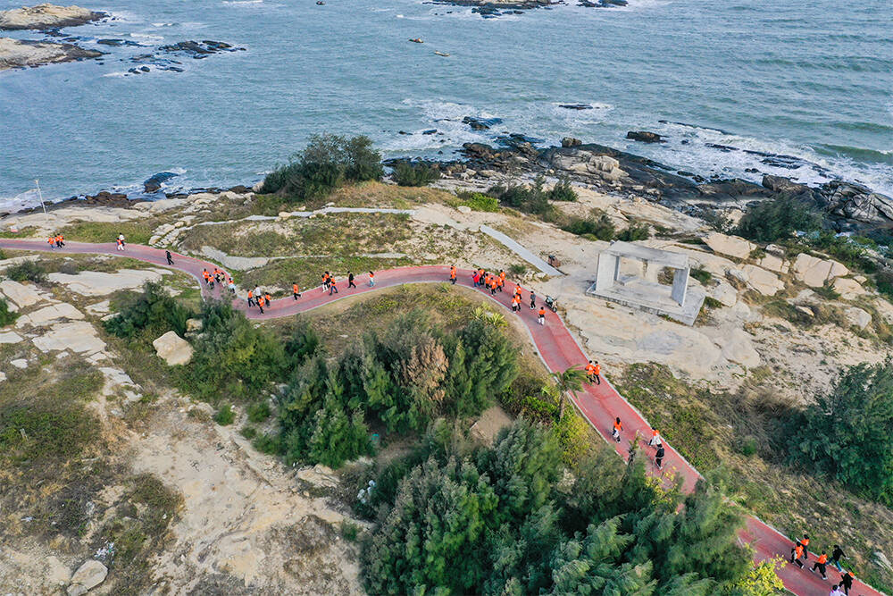 徒步活动从永宁古卫城城门口广场启程,各队伍途经城隍庙广场、在宁海、黄金海岸沿海步道,最终抵达观海广场,全程约5.5公里。沿途各队伍还依次完成“掷”地有声、快问快答、清正廉洁形象拼图打卡。