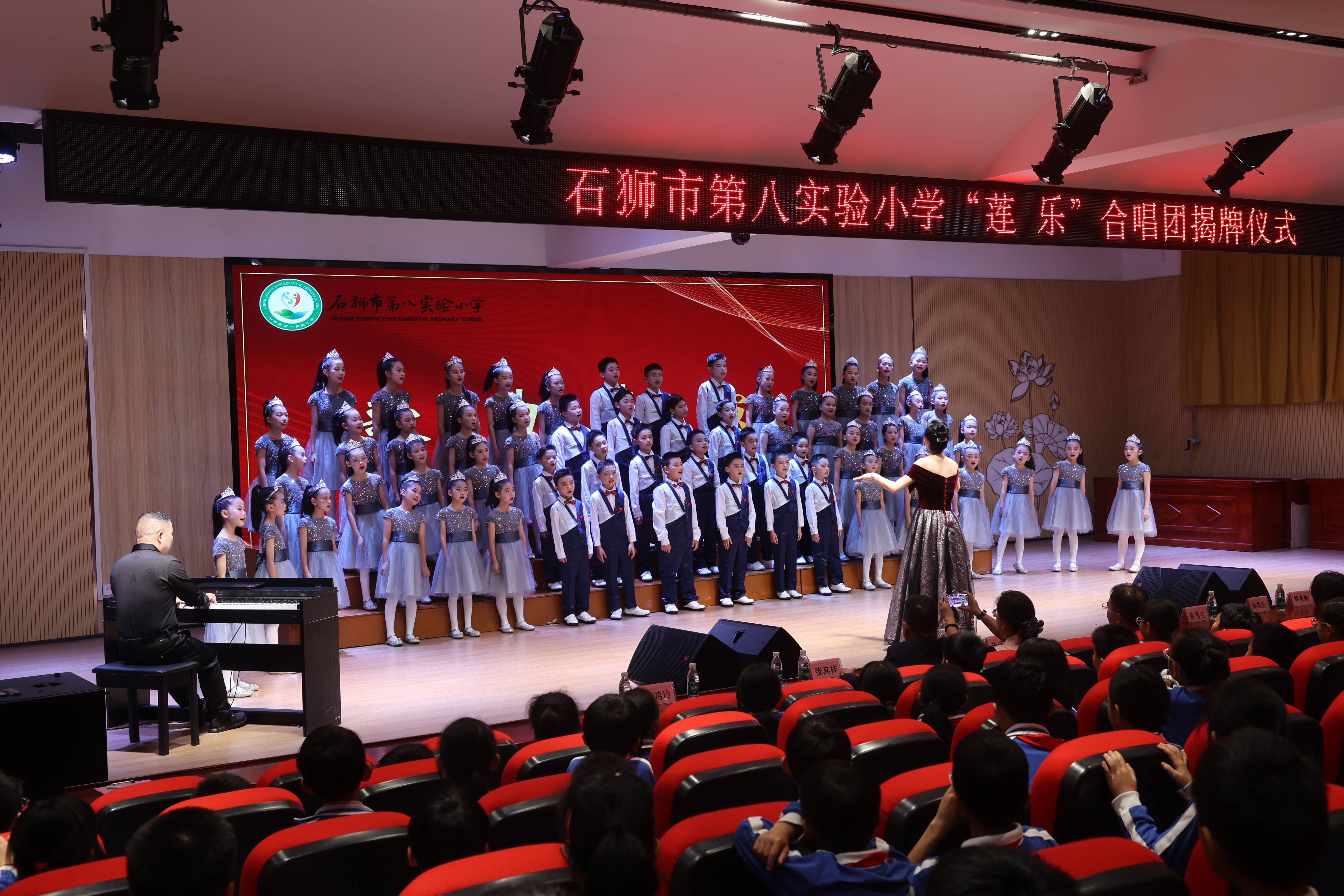 “莲乐”合唱团的成立,是石狮八小深化素质教育、践行“五育并举”的又一坚实步伐,预示着该校艺术教育将谱写新的篇章。八小“莲乐”合唱团由原校合唱队升格而来,团员由60名三至五年级学生组成。这不仅是名称的变更,更是学校美育工作提质增效的生动体现,象征着学校艺术教育实现了从“兴趣培养”到“专业引领”、从“小众参与”到“品格浸润”的深化与跨越。揭牌仪式后,八小“莲乐”合唱团献上首场演出,成员们深情演唱了八小校歌《莲》和原创歌曲《林銮渡的月光》《 小池》。(石狮市融媒体中心记者 兰良增 颜华杰 报道)
