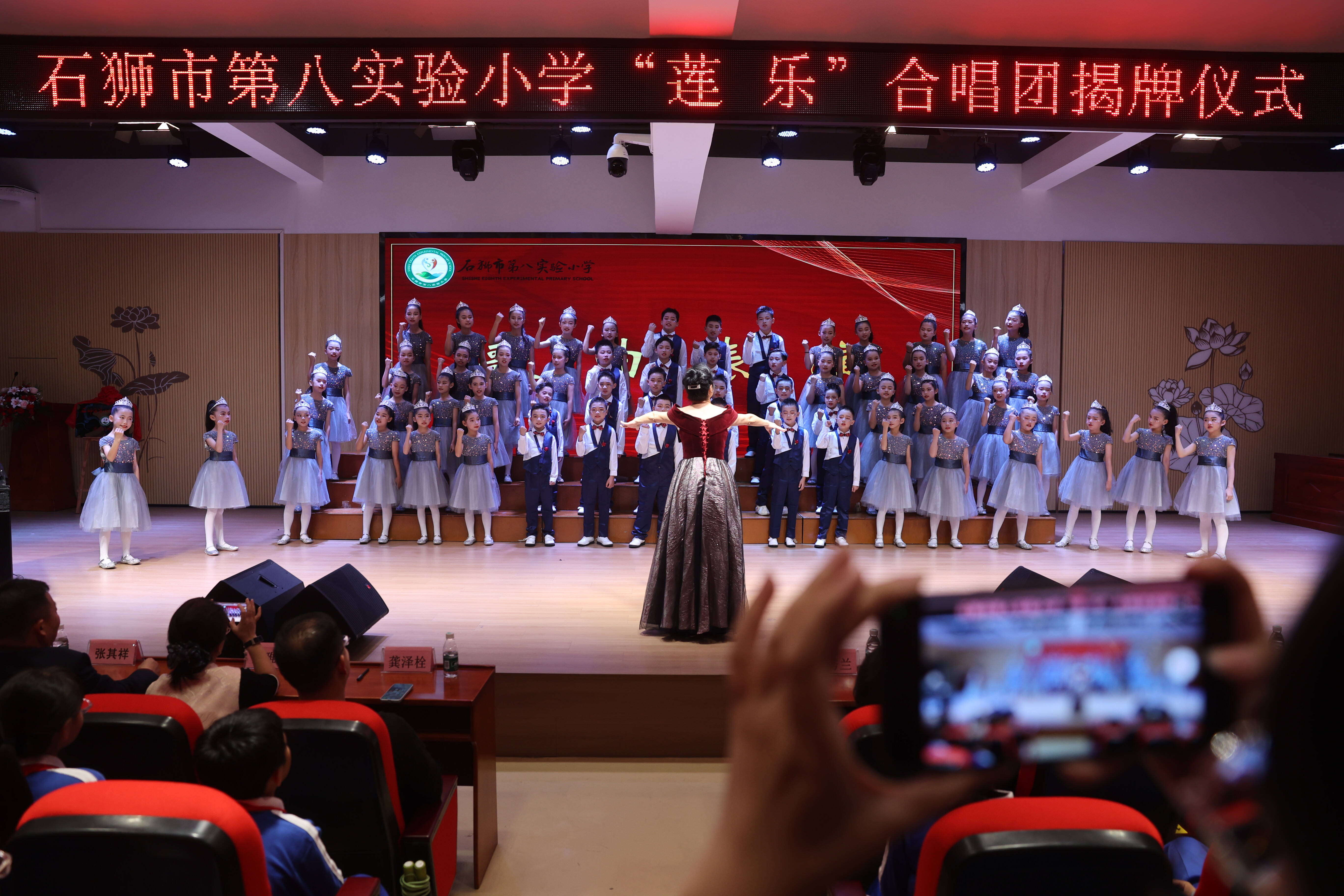 12月11日下午,石狮市第八实验小学“莲乐”合唱团成立仪式在该校多功能报告厅举行。在石狮市教育局、蚶江镇政府、蚶江教育基金会、石狮市八小教育促进会及学校有关负责人与师生、家长代表和石狮市文化特派员团队的共同见证下,八小“莲乐”合唱团正式揭牌。