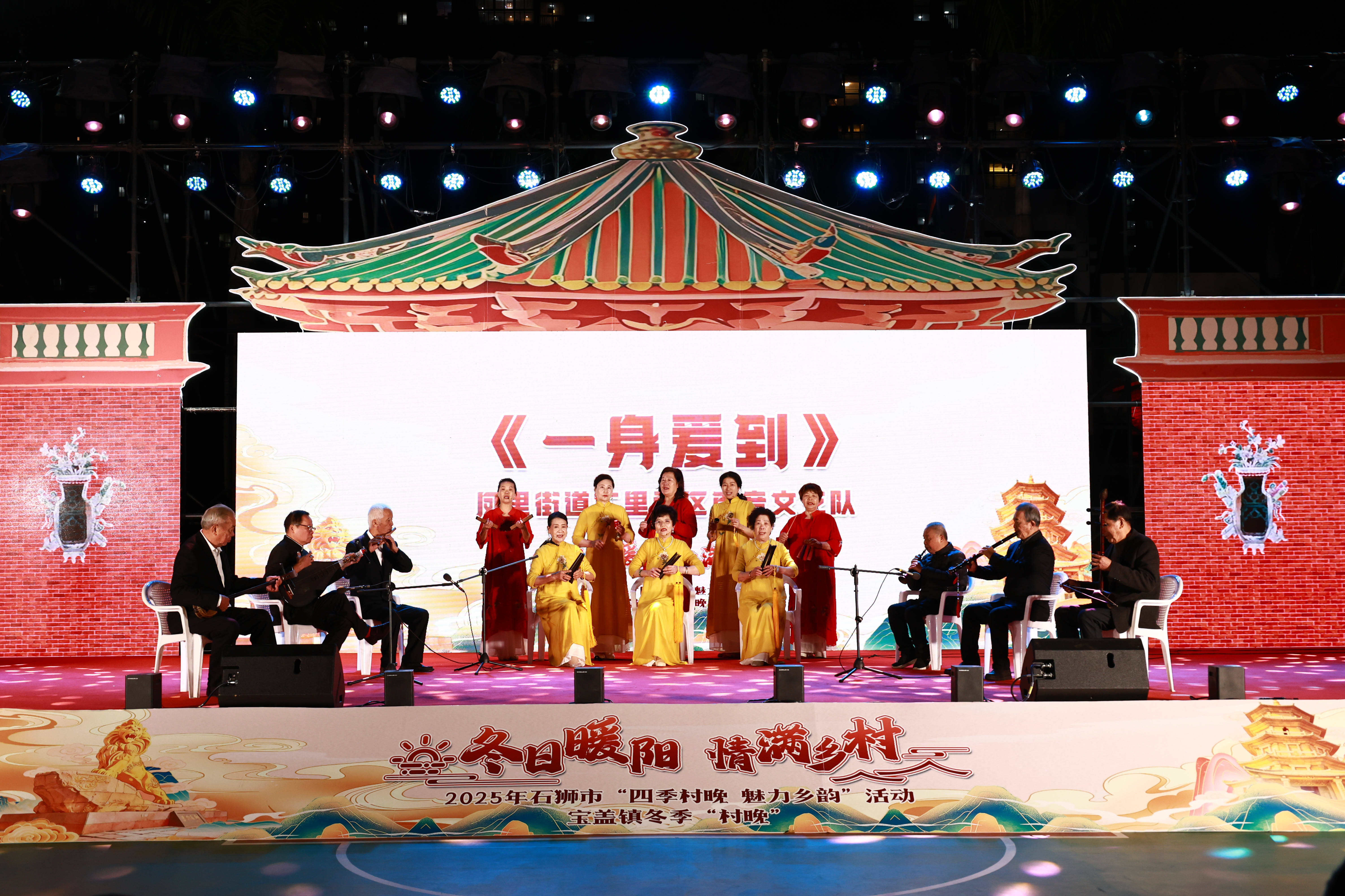 12月26日,宝盖镇宝源社区灯光篮球场灯火通明、暖意融融,以“冬日暖阳 情满乡村”为主题的2025年石狮市“四季村晚·魅力乡韵”第四季度活动在此精彩上演。市领导王莉萍,市委宣传部(文明办)、市农业农村局、市文体旅游局、宝盖镇、文旅集团公司、融媒体中心,以及各镇(街道)相关负责人参加活动。