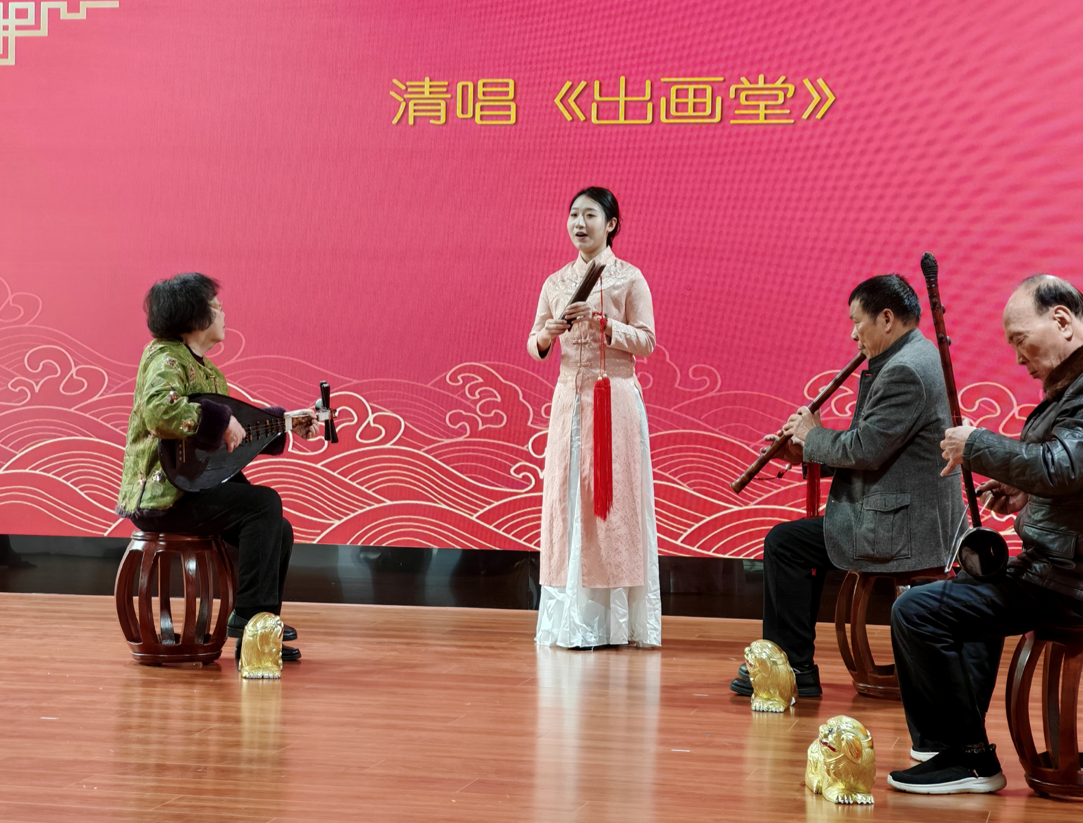 展演环节,包括嗳仔指《霏霏飒飒》、《直入花园》等7个经典南音曲目轮番上演,涵盖演奏、表演唱、大合唱、对唱等多种形式,部分老学员还专程赶回参与演出,稚嫩的唱腔与娴熟的演奏赢得现场阵阵掌声。