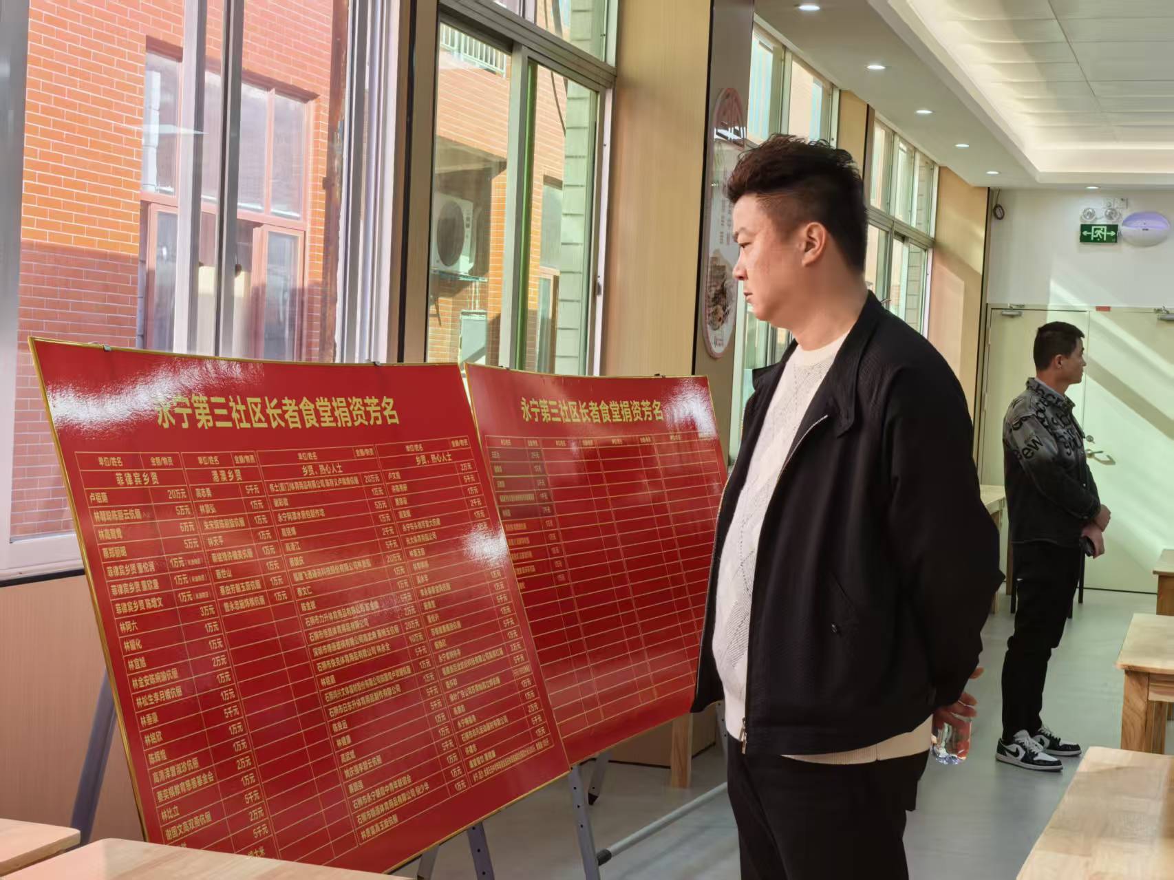 永宁第三社区党总支书记、居委会主任林英瑜告诉记者,长者食堂凝聚着海内外乡贤、爱心人士的桑梓情,社区将用心管好每一分捐款、做好每一餐饭菜,让食堂成为长者“暖胃又暖心”的港湾。社区副主任高智勇在开餐仪式上宣读了食堂捐资芳名录,从1000元到20万元的现金捐款,再到500斤米、100斤食用油的物资捐赠,每一笔捐赠都被清晰记录。