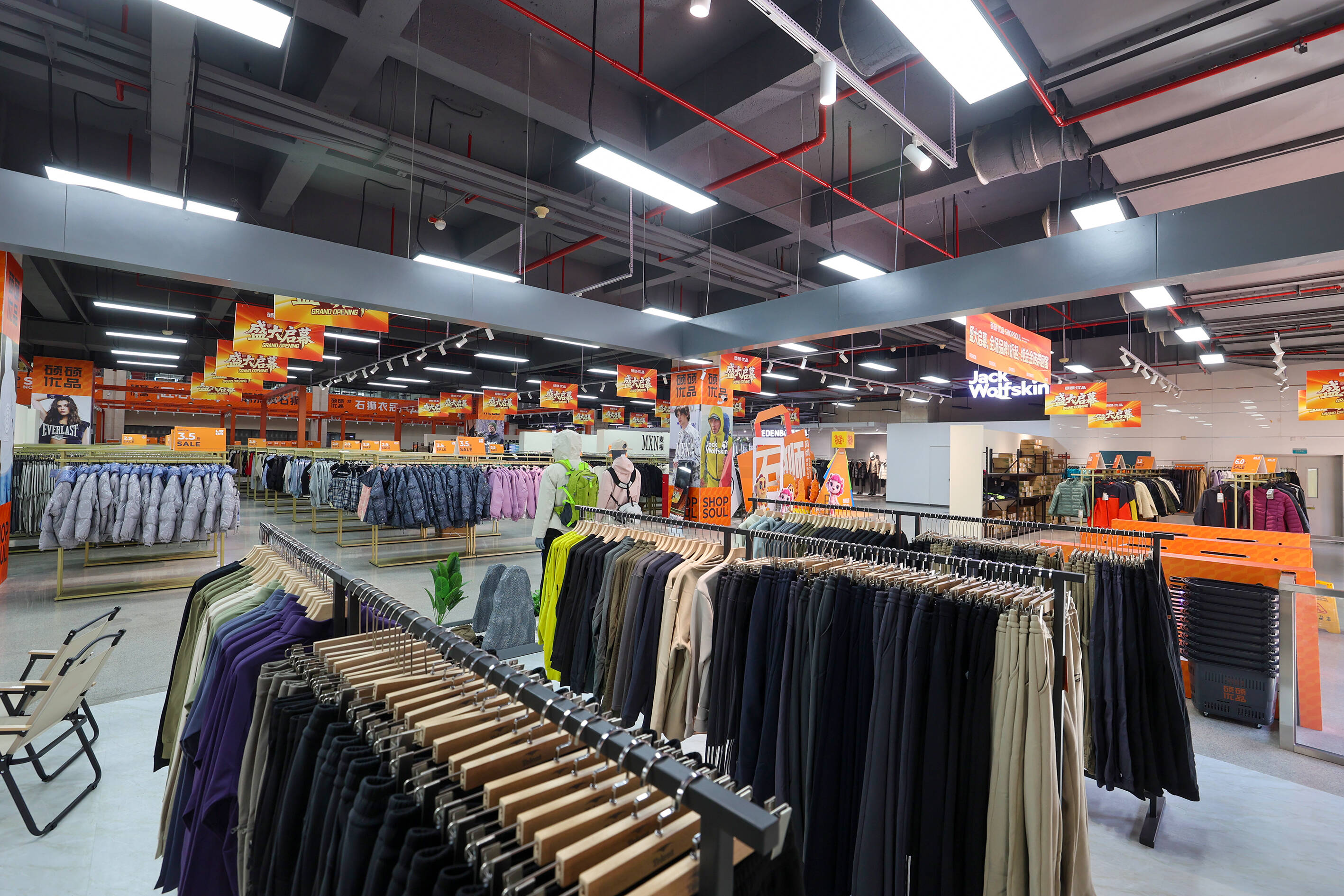 作为石狮首个官方城市奥莱项目,硕硕优品城市奥莱馆依托石狮服装城2号馆,打造了一座面积达5000平方米的跨年龄、多风格、全品类城市奥莱购物广场。项目重点引入国际运动品牌与本土服饰品牌,定位为“时尚折扣体验中心”。馆内规划四大功能区:品牌奥莱区(国际品牌奥莱形象店)、体验互动区(设有互动镜和体验装置)以及餐饮休闲区,为消费者提供一站式购物休闲体验,另有本土风尚区,集中展示石狮设计力量,为“休闲服装名城”提供线下展示窗口,让消费者直接感受石狮制造的品质与设计。