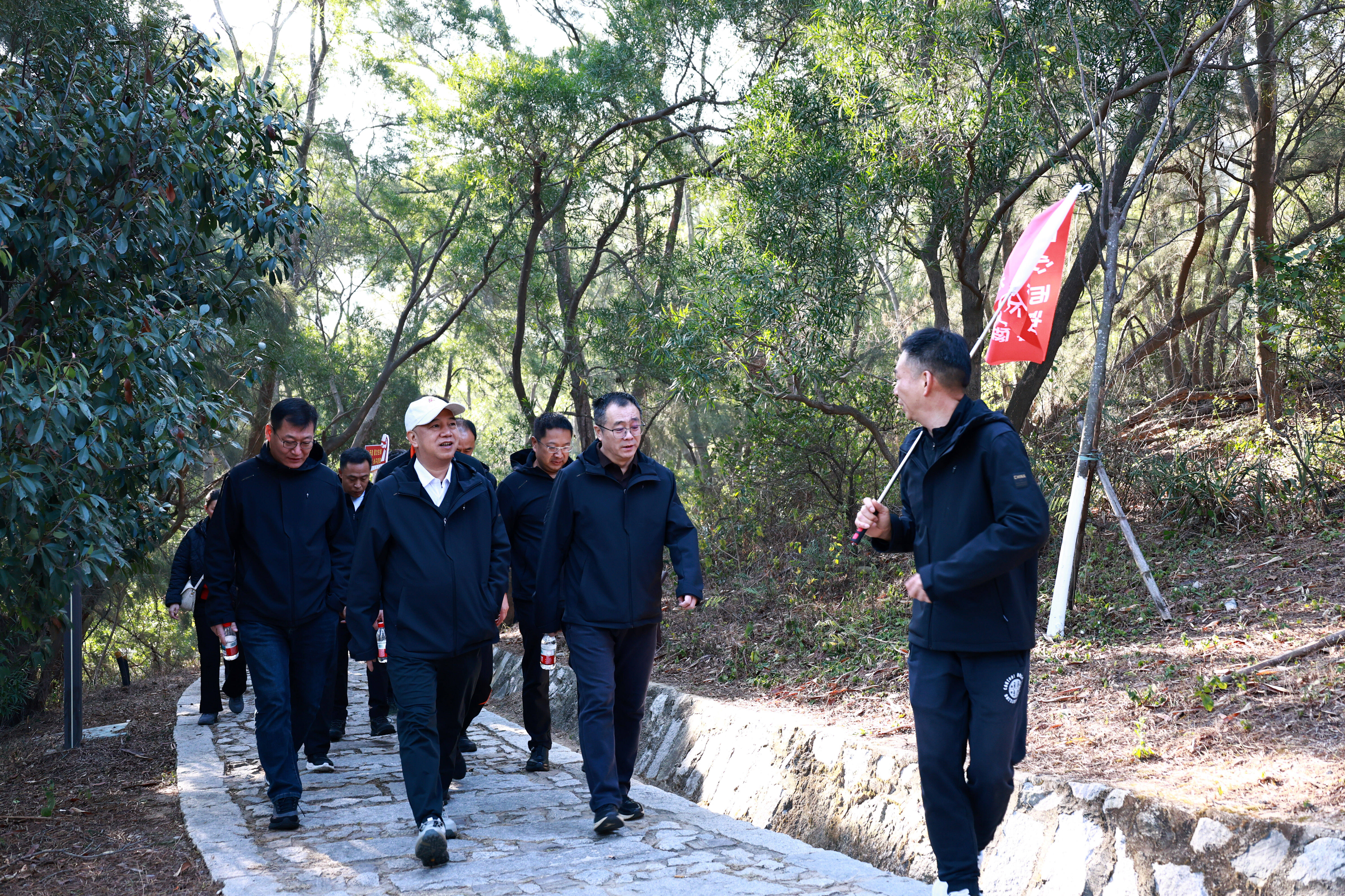 活动中,职工及家属结伴攀登宝盖山,在山林间的互动协作中,既体验了户外运动的乐趣,也增进了彼此的情谊,展现出公司职工团结奋进的精神风貌;而设置在揽胜亭的党建座谈环节,更是让登高之旅成为一堂“行走的党课”。党员代表在国能福建公司和国能石狮公司领导的带领下,围绕党建与生产经营、工程建设融合等议题展开交流。
