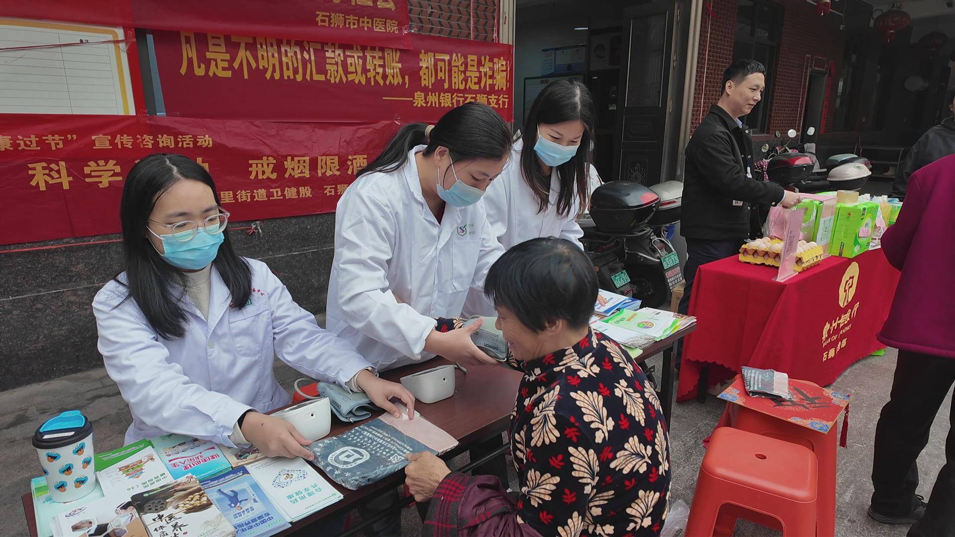活动现场,书法家们挥毫泼墨,一副副饱含年味的春联和“福”字跃然纸上。居民们手持春联,脸上洋溢着喜悦。同时,来自石狮市中医院等单位的医护人员也在现场搭起义诊台,为居民提供免费的健康咨询、血压测量等服务,细致解答大家的健康疑问,把关怀送到群众身边。