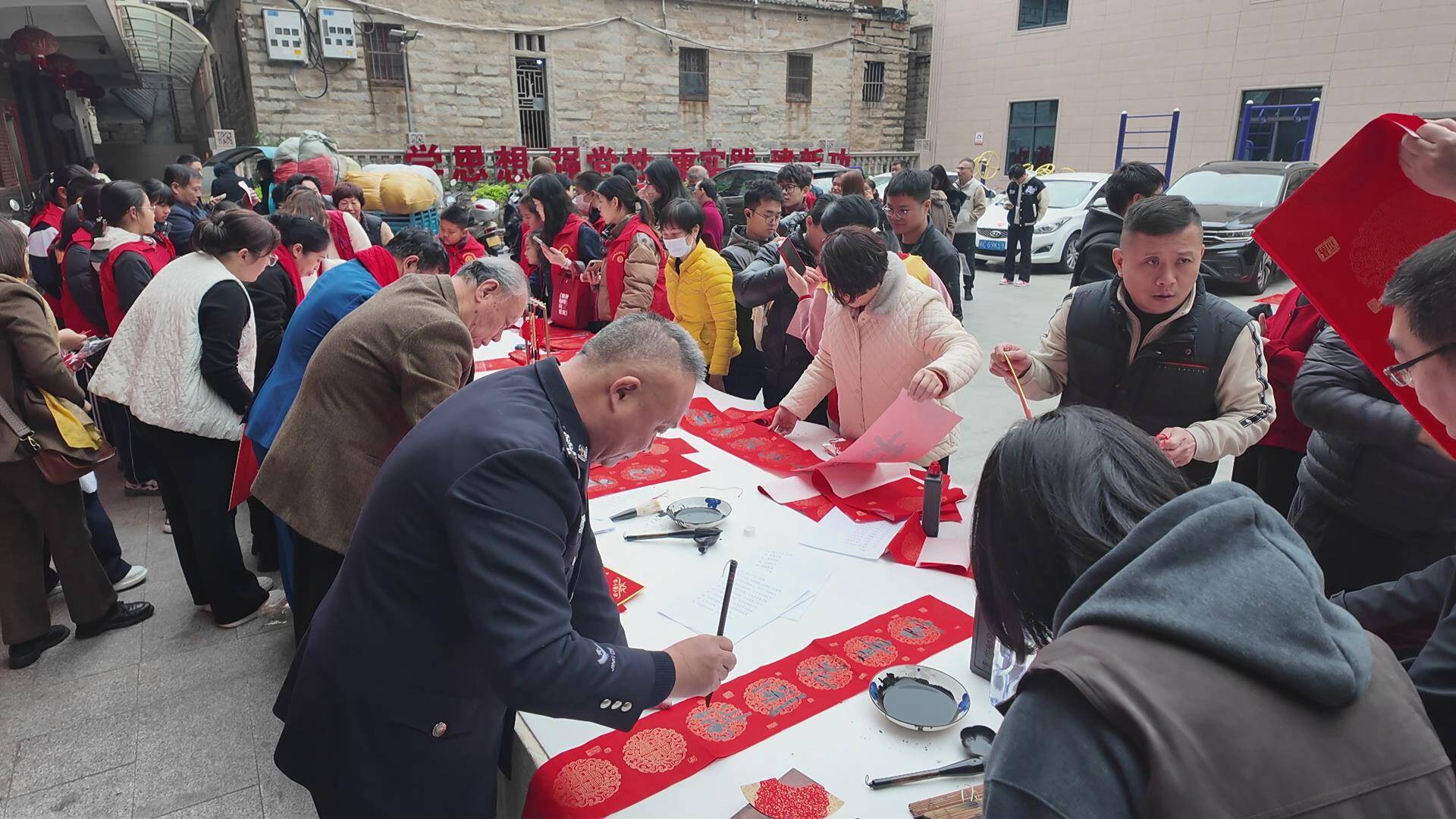 “每年都盼着这个活动,书法家写的春联比买的更有年味,今天还顺便测了血压,社区真是把我们的需求放在了心上。”凤里街道后花社区居民许阿姨开心地告诉记者。1月27日,凤里街道后花社区开展“我们的节日·春节”义写春联主题活动,为辖区居民送上“文化 + 健康”的双重新春祝福。