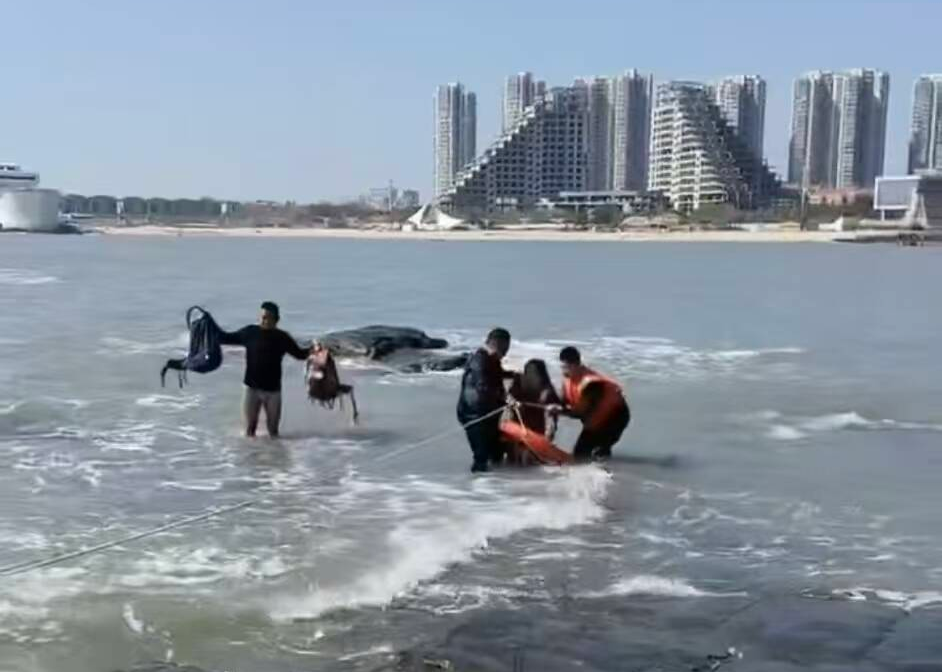 2月4日上午11时25分,泉州海警石狮工作站接到报警:永宁黄金海岸附近海域,一名女游客被困礁石,潮水正持续上涨。接警后,海警执法员迅速启动应急响应机制,联动当地公安、消防、救援协会等,火速赶赴现场展开救援。11时35分,海警执法员第一时间抵达现场,原本可供游玩的礁石已被海水淹没,仅露出1—2平方米,一名女游客全身已被海浪拍湿,情况非常紧急。海警执法员与救援队员任利明、高燕吞立刻携带救援装备跳入海中,在海中开辟一条“安全通道”。经过10多分钟的救援,成功把女游客转移到安全地带,目前该游客身体并无大碍。