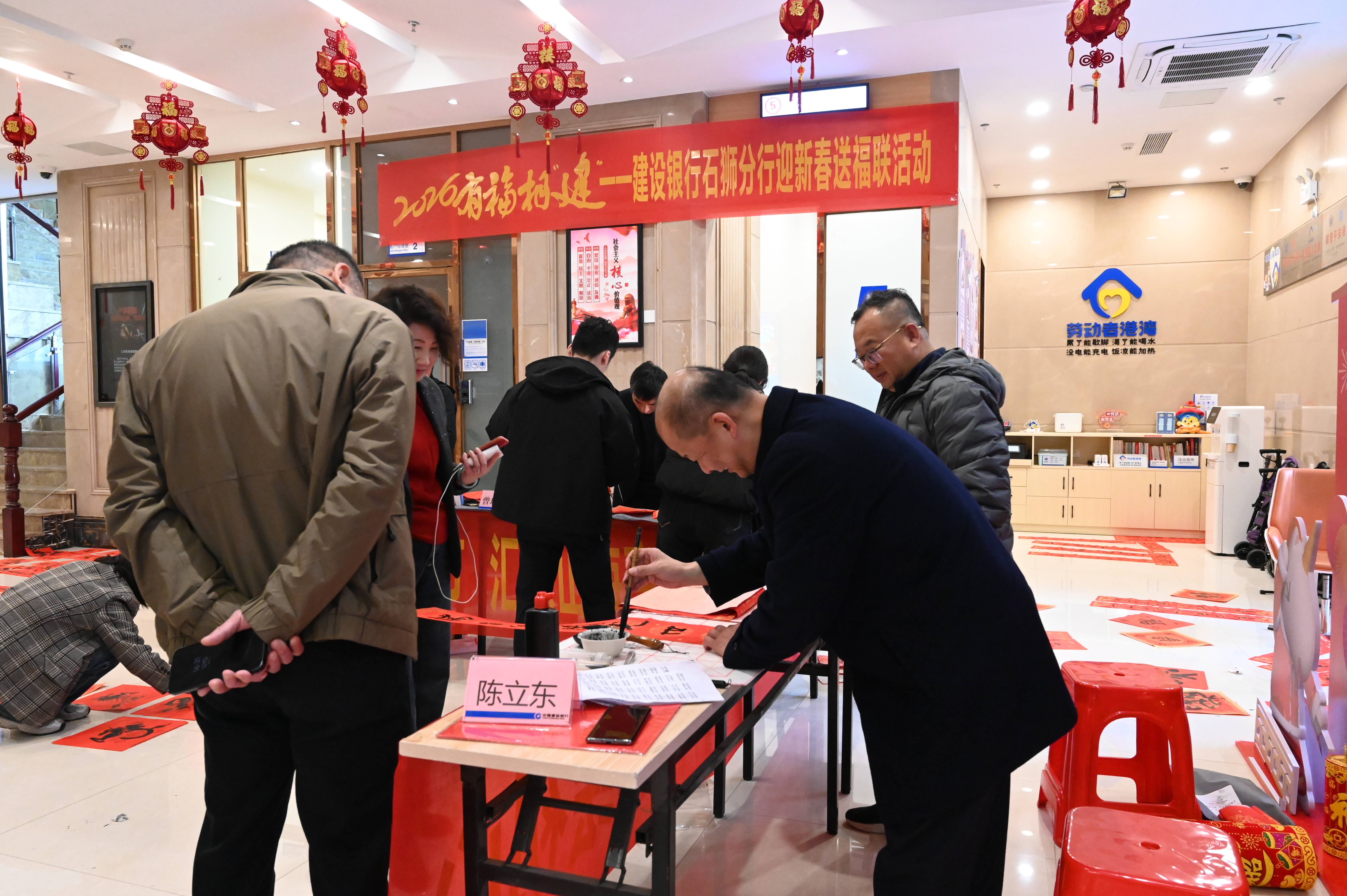 2月4日,建设银行石狮分行营业大厅内墨香四溢、暖意融融。一场主题为“2026有福相‘建’”的迎新春送福联活动在此温情举办,邀请市书法家协会会员挥毫泼墨,为市民递上一份浸润墨香的“新春吉礼”。