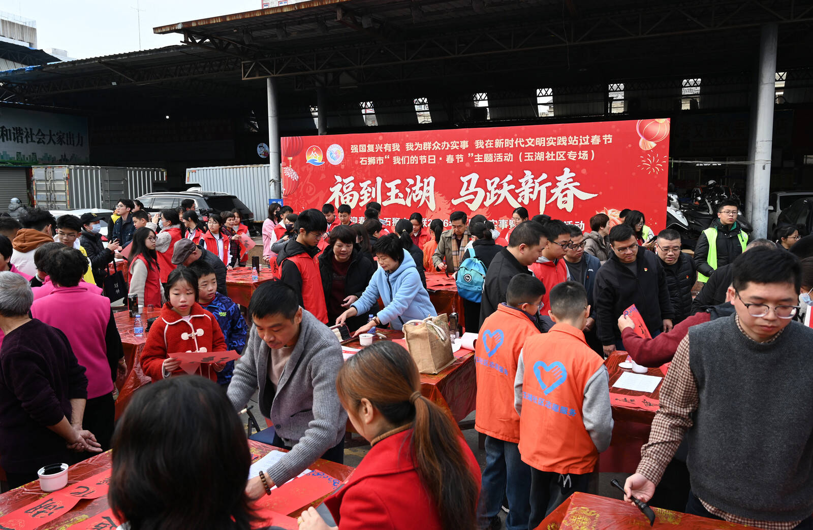 2月5日上午,湖东公园内红灯笼高挂、人声鼎沸,“万福迎春——石狮市文联2026年为民办实事暨新春赠联活动”温情启幕。这场以“骏马迎春传墨韵 红联贺岁暖人心”为主题的文化盛宴,将传承中华优秀传统文化与“我为群众办实事” 实践深度融合,让居民在笔墨书香中感受别样年味,在邻里欢聚中凝聚文明力量。