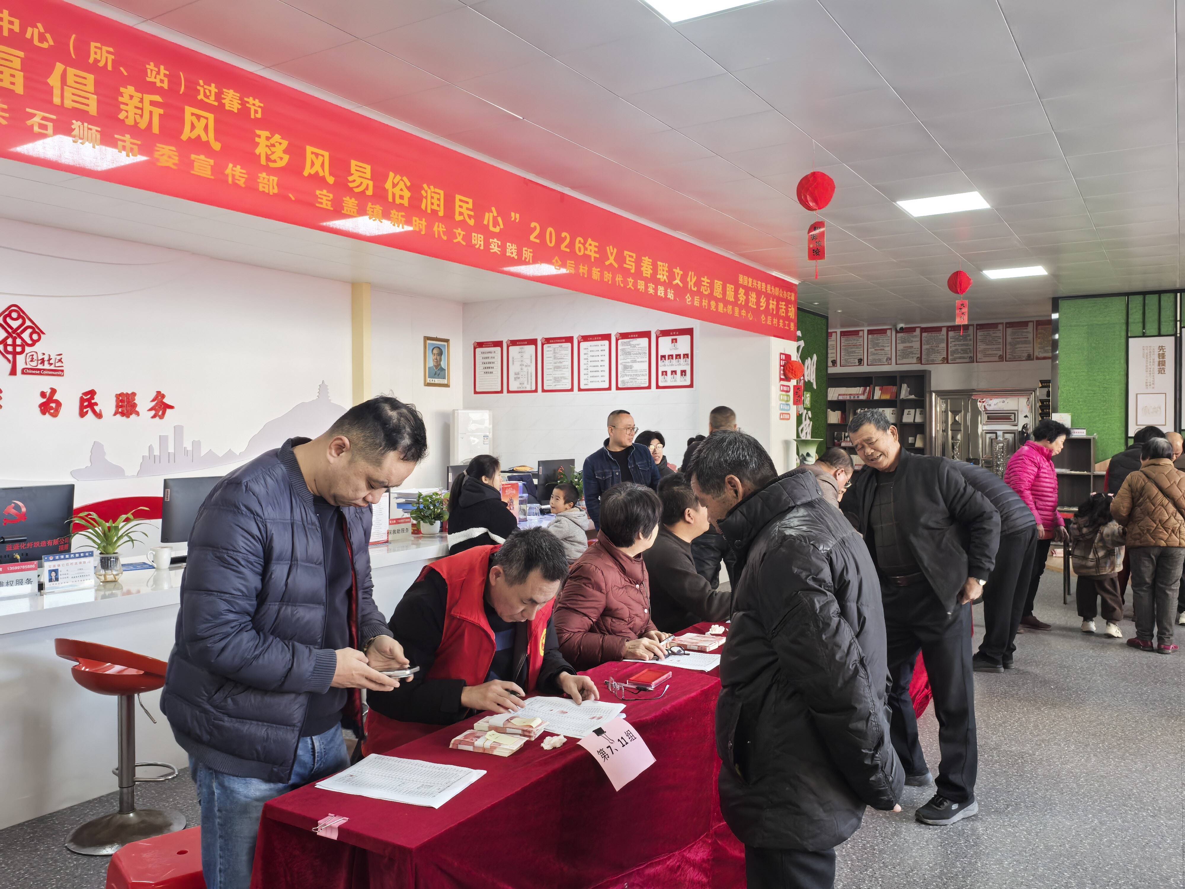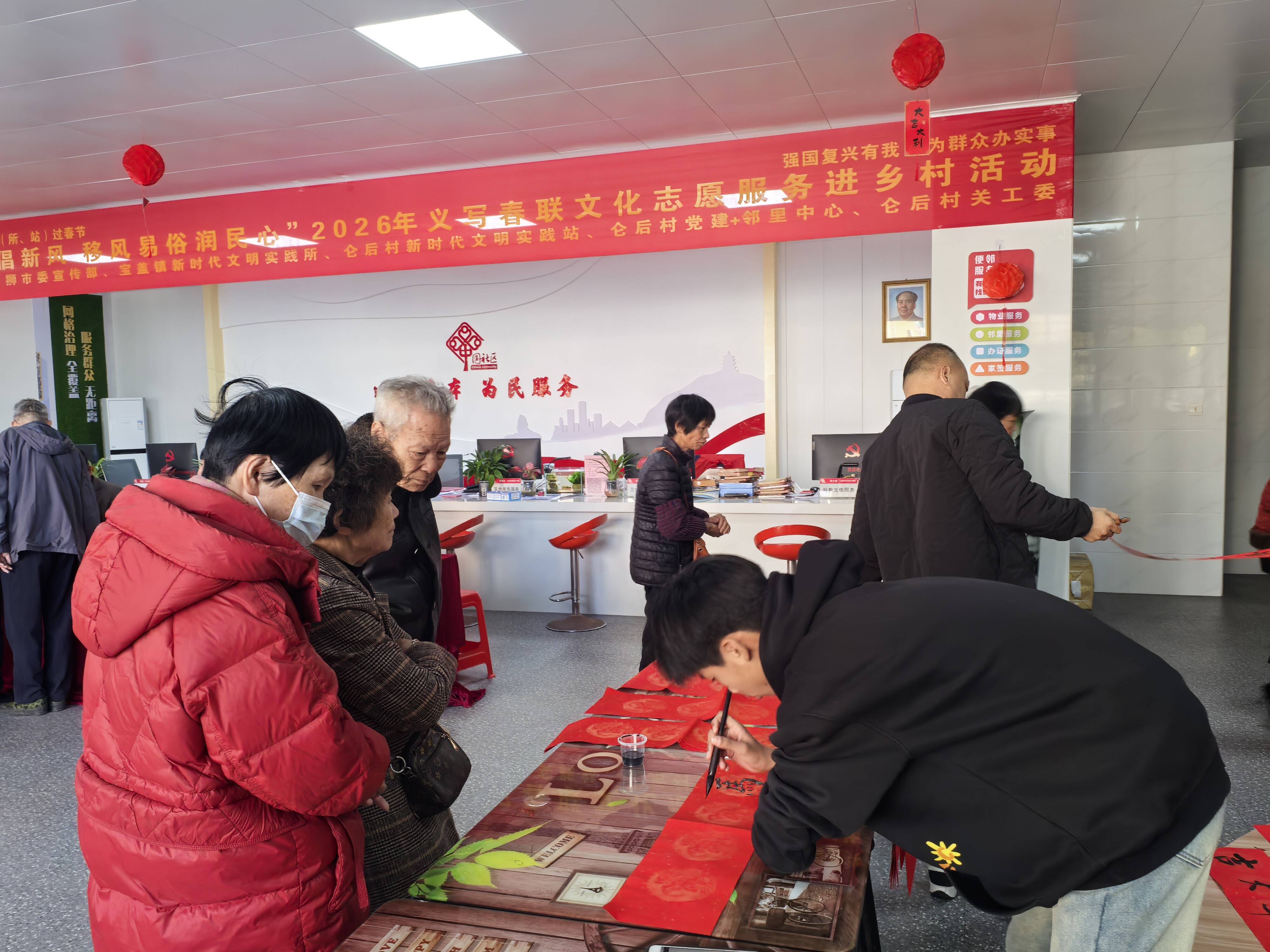 结合此次春节慰问活动,宝盖镇新时代文明实践所联合仑后村“党建+”邻里中心、新时代文明实践站、关工委,同步开展“春联送福倡新风,移风易俗润民心”2026年义写春联文化志愿服务活动。一群书法爱好者受邀,到场为村民义写春联,活动现场洋溢着浓浓的节日气氛。(石狮市融媒体中心记者 林智杰 报道)