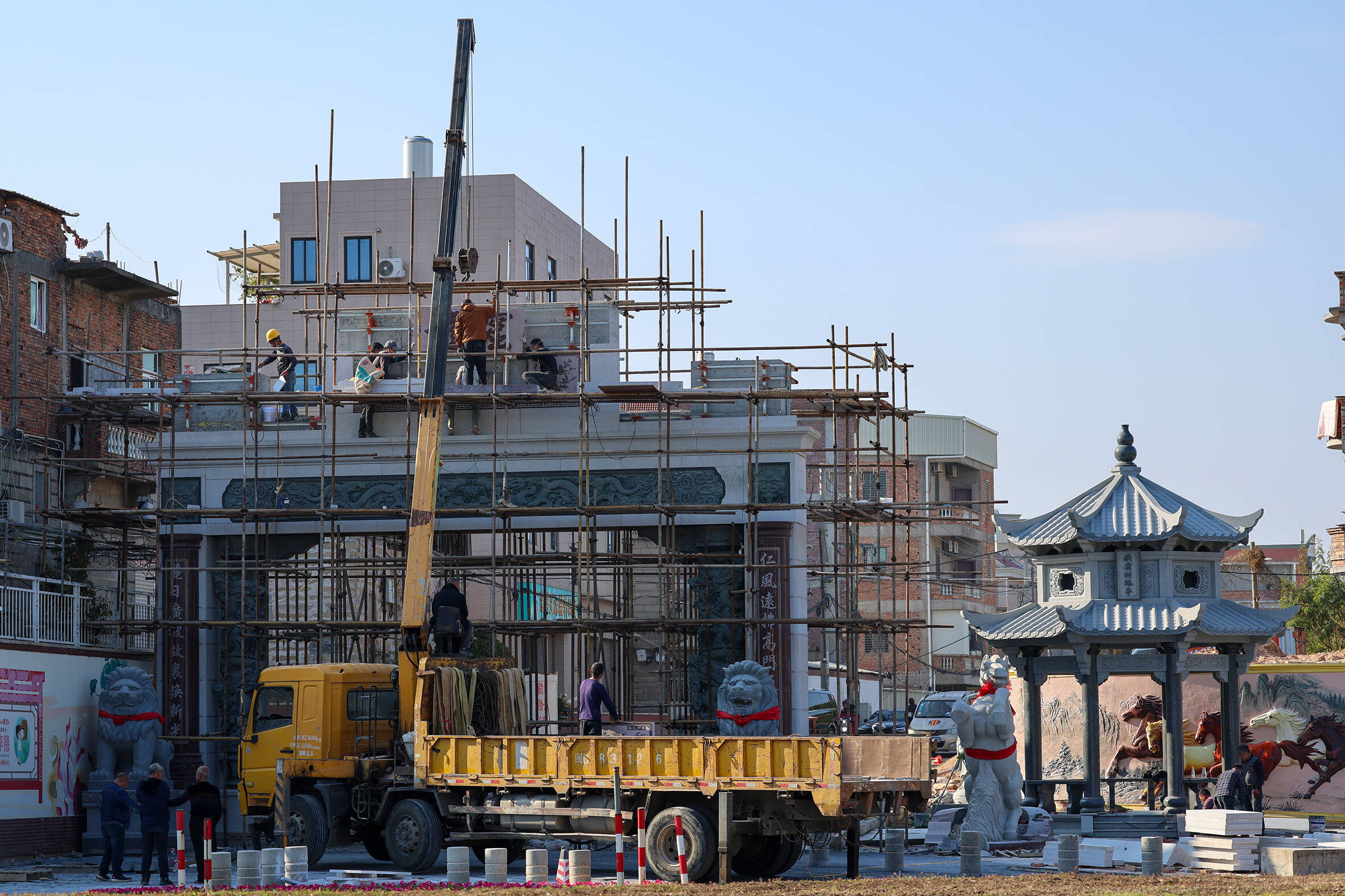 随着马年春节脚步临近,蚶江镇洪窟村龙珠大道与濠江北路交汇处焕然一新。2月13日下午,施工人员加紧对洪窟村口牌坊“洪窟”大字进行吊装作业,村牌坊及景观工程即将全面完工,以“骏马奔腾”为主题的地标群落惊艳亮相,成为海内外乡亲献给家乡的新春贺礼。