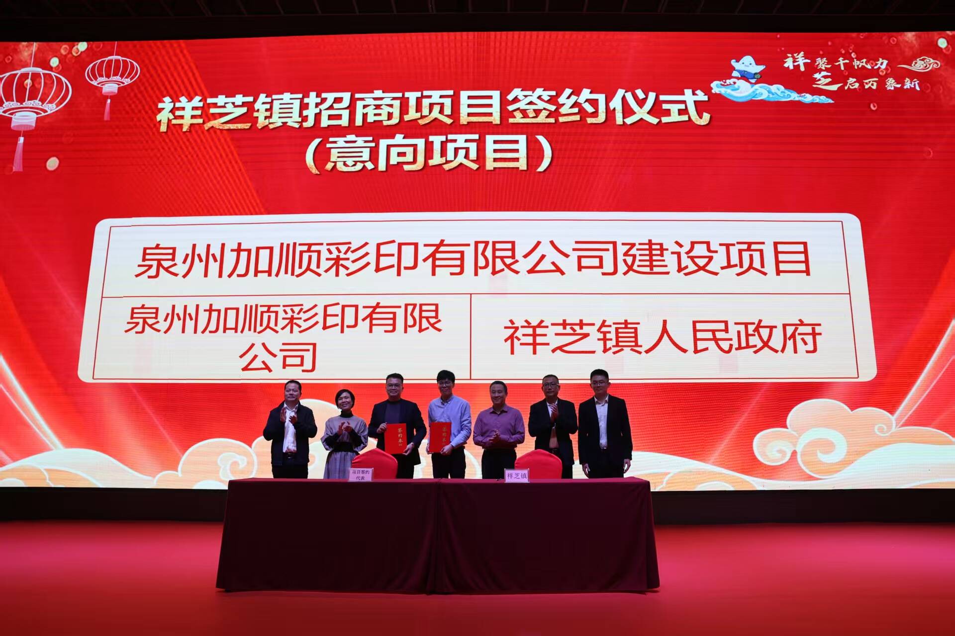 会上,祥芝镇党委书记致辞,回顾过去一年来的发展成效;祥芝商会代表发言,表达了扎根祥芝、建设祥芝的坚定决心。招商推介环节,相关负责人依次作祥芝镇招商项目及海洋生物产业园推介,全面展示当地产业优势与投资机遇。随后的签约环节,6个优质项目现场集中签约,总投资达16.5亿元,涵盖漂染、新材料、水产品精加工等多个领域,将为祥芝产业升级注入强劲动能。