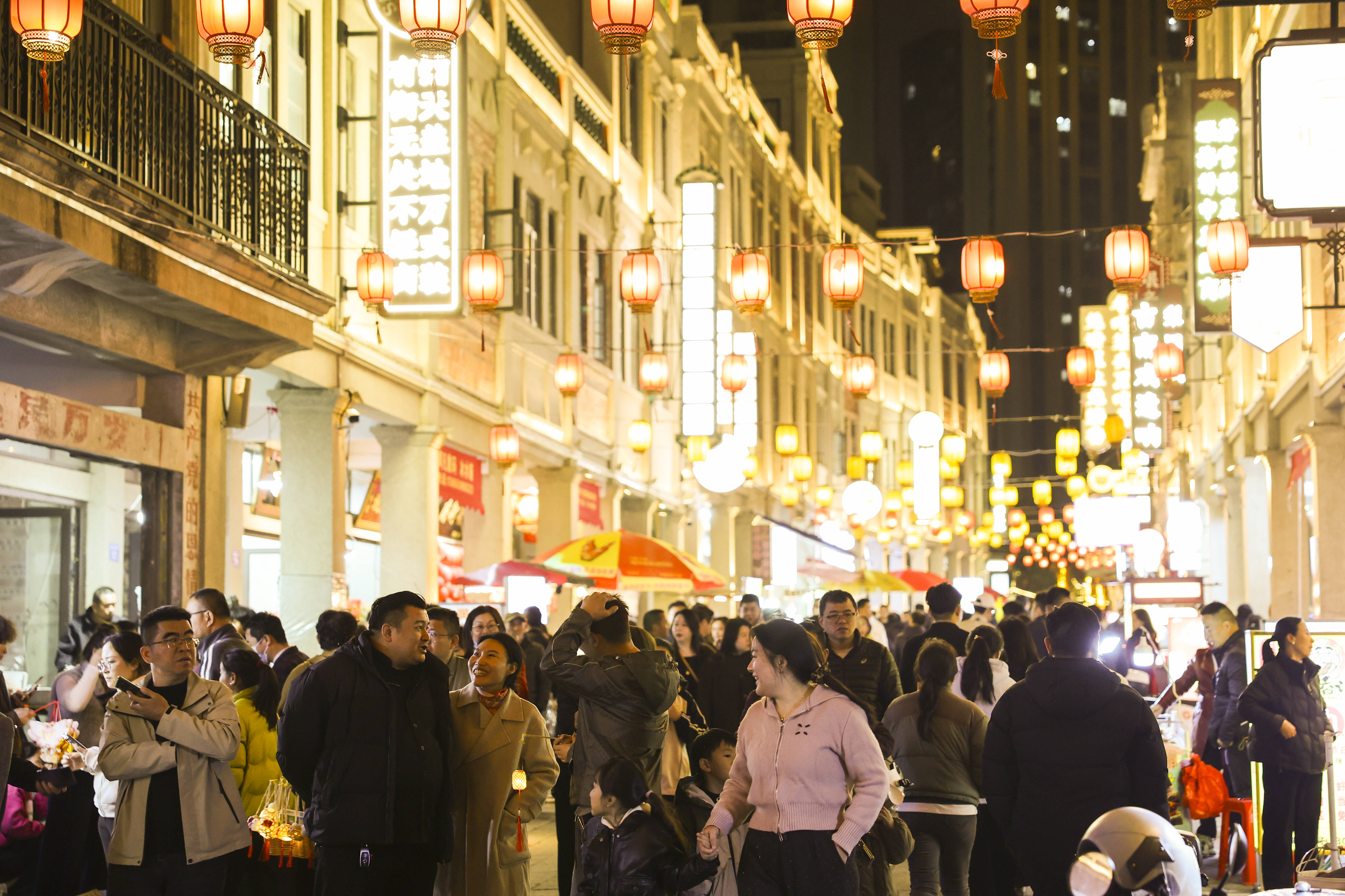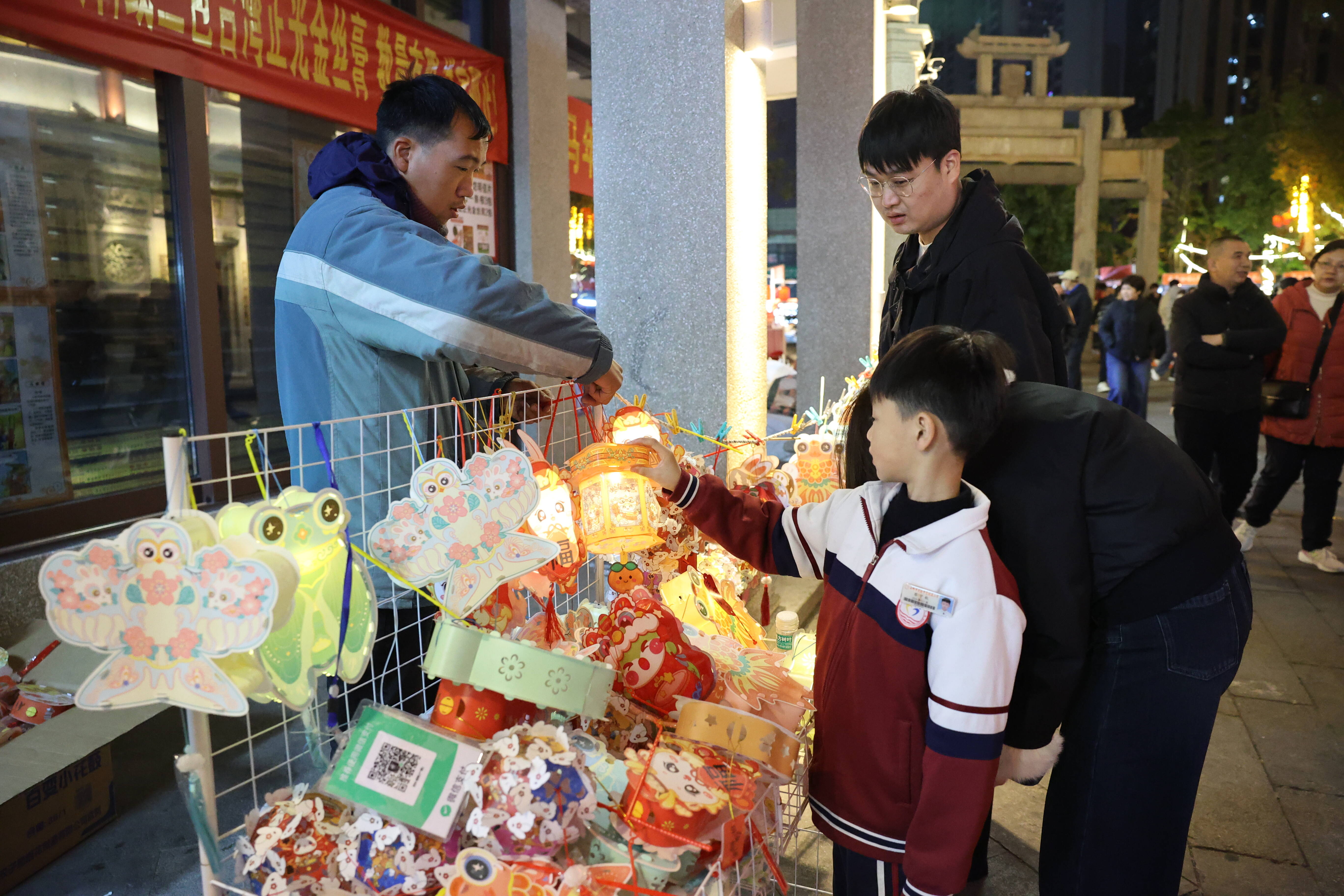 舞台之外,古街各处同样热闹非凡。手作灯笼体验区里,市民游客亲手制作花灯,点亮专属元宵记忆;美食集市汇聚闽南卤味、古早味点心等特色风味;灯谜区人头攒动,大家竞猜解谜、赢取好礼,欢声笑语不断。值得一提的是,当晚还有游灯队伍沿着古街徐徐前行,手提花灯的市民游客与沿街灯火交相辉映,勾勒出一幅唯美画卷。