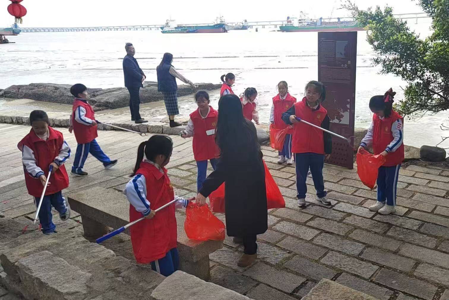 活动现场,党员、红领巾志愿者与老师们向过往市民及游客宣讲石湖码头的历史价值与保护知识,普及世界文化遗产保护理念,引导市民、游客共同守护千年海丝遗存。同时,大家手持清洁工具,沿林銮古渡周边捡拾垃圾、清理杂物,以实际行动美化环境、践行志愿服务精神。