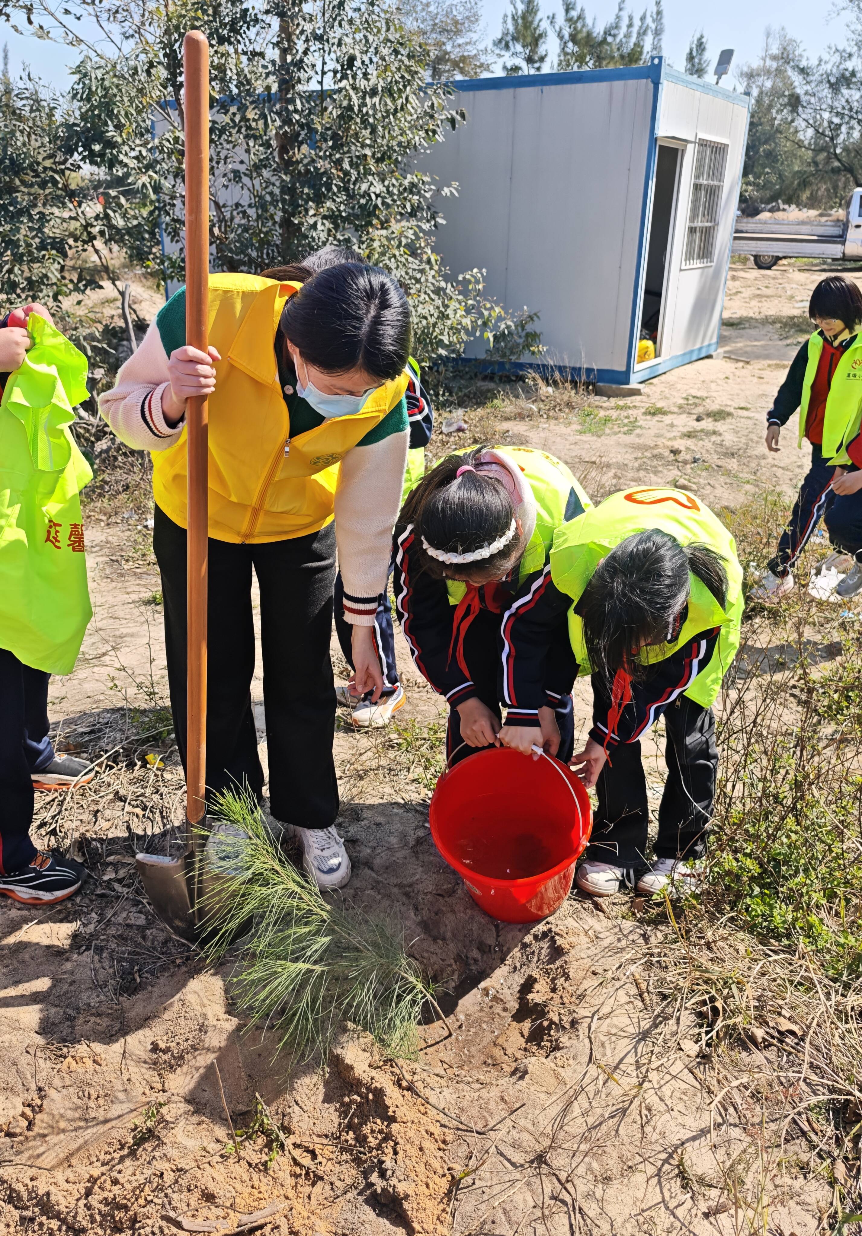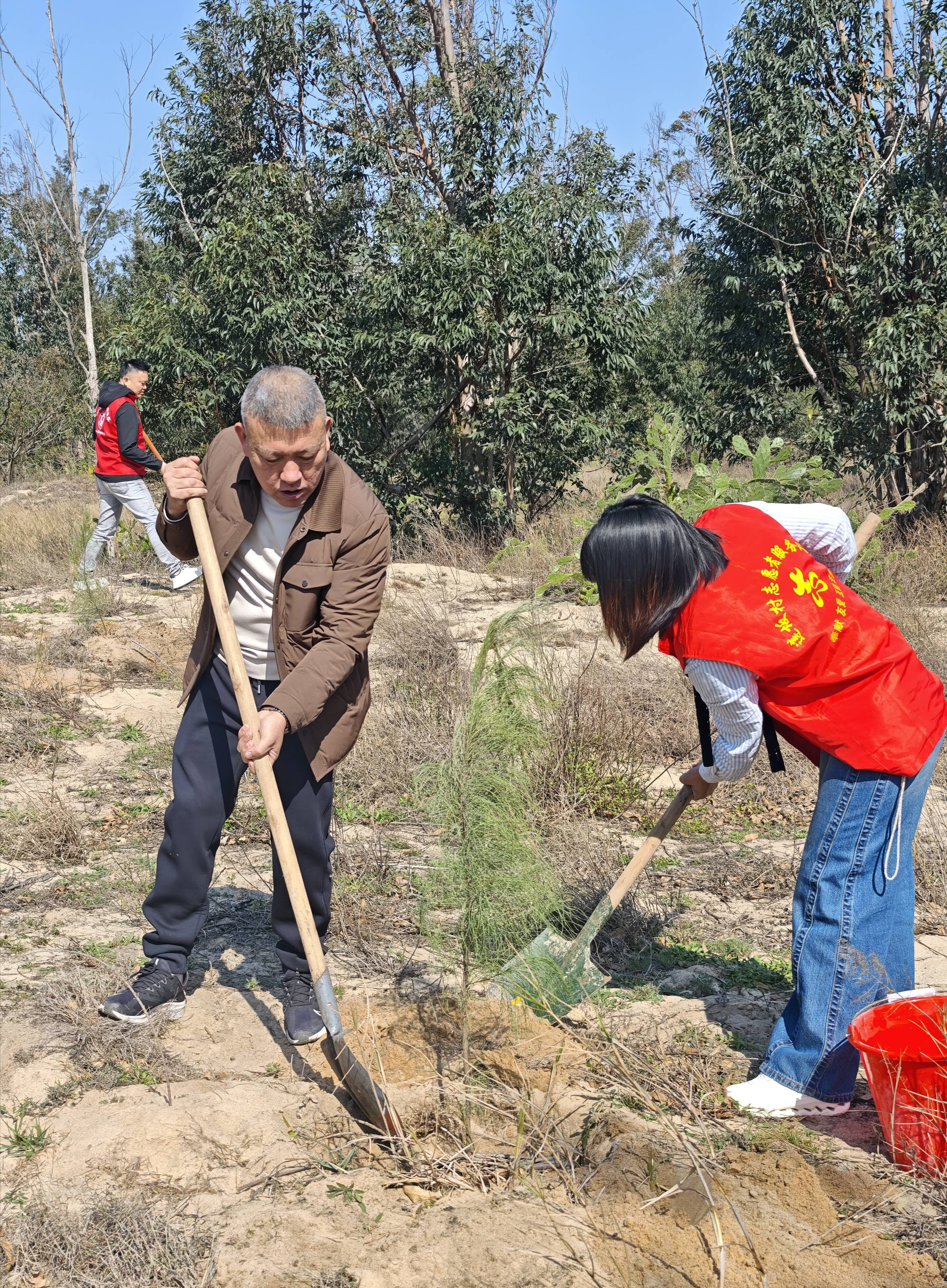 活动现场,众人分组领取树苗与工具,挥锹培土、扶正苗木、提桶浇水,分工协作、配合默契,一派热火朝天的劳动景象。近三个小时大家齐心协力种下200棵木麻黄,为沿海防风林筑牢绿色屏障。