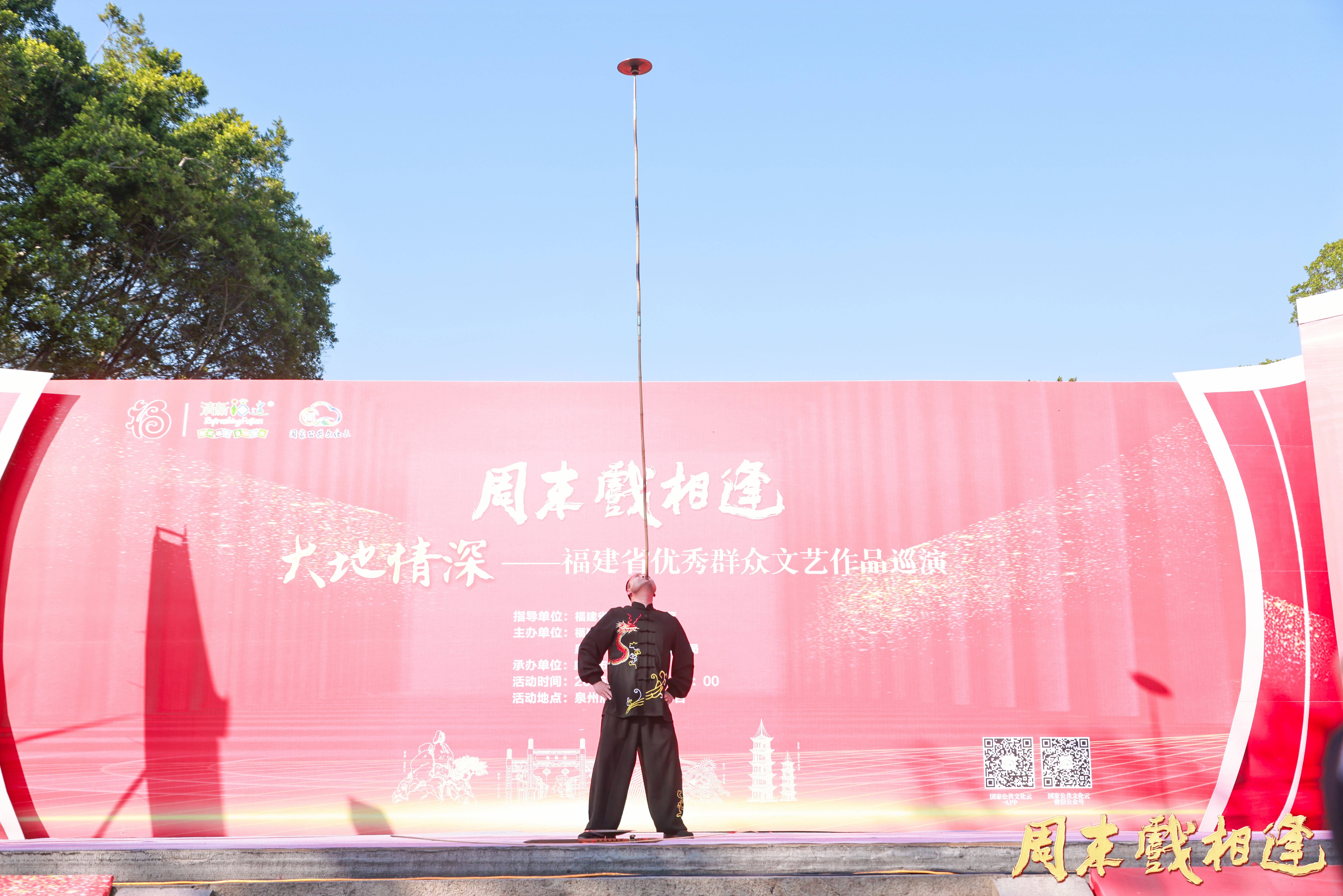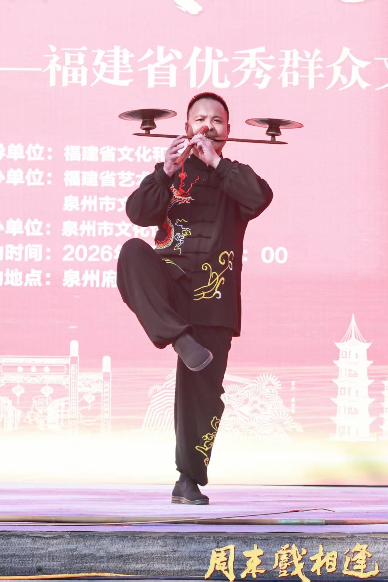 3月14日,“周末戏相逢·‘大地情深’福建省优秀群众文艺作品巡演(泉州站)”在泉州府文庙广场上演。本场巡演汇集全省各地优秀群众文艺作品,涵盖南音、舞蹈、武术、高甲戏等多元艺术门类,来自我市的传统非遗技艺节目《璇钹九霄》惊艳亮相古城舞台,为本场活动增添了浓郁的本土非遗韵味。