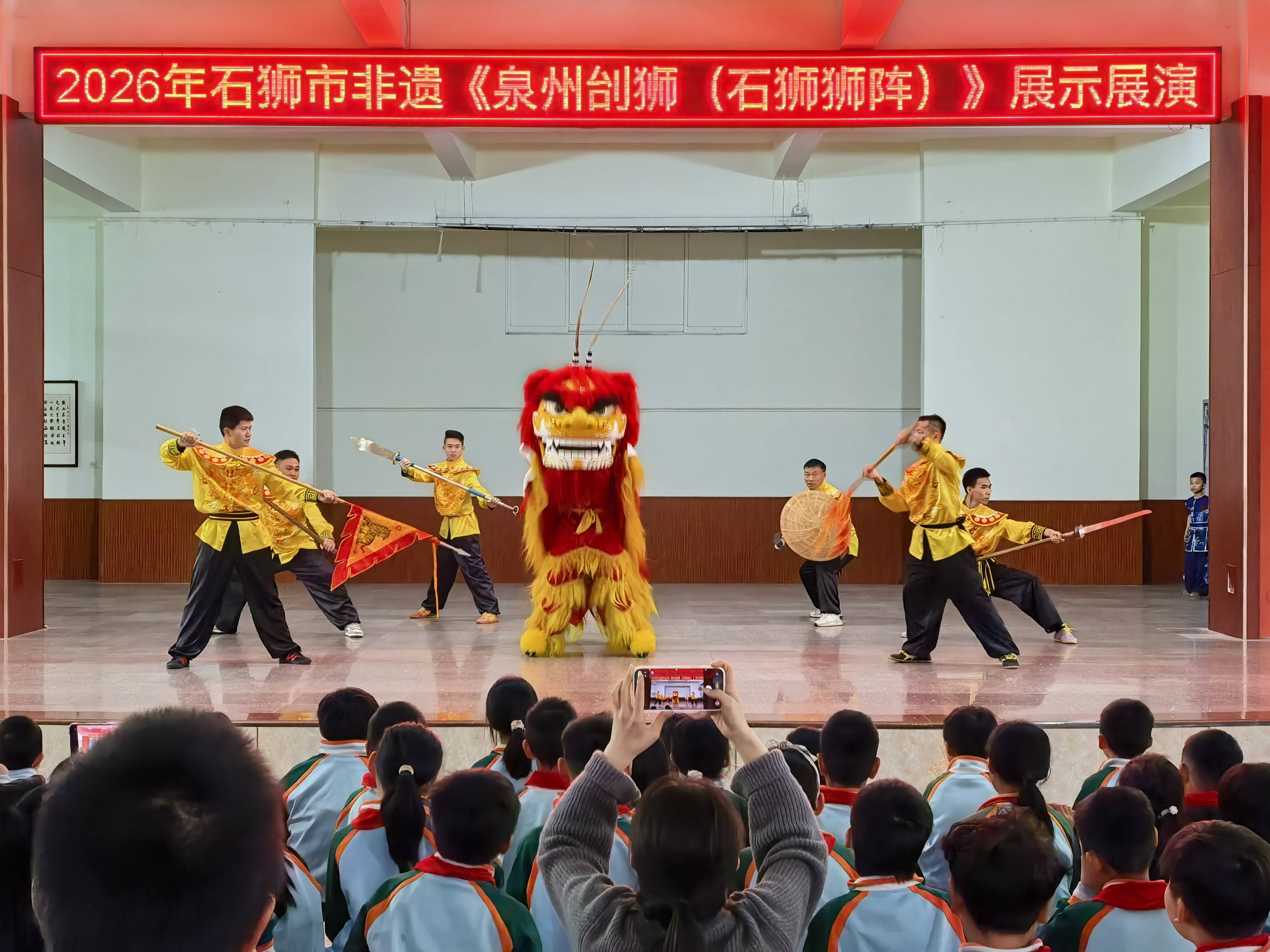 3月24日,由石狮市文化体育和旅游局、石狮市文化馆承办的非遗进校园活动走进自然门学校。提线木偶、刣狮、掷铙钹、糖画等独具闽南特色的非物质文化遗产项目集中亮相,为该校师生献上了一场精彩纷呈的传统文化视听盛宴。