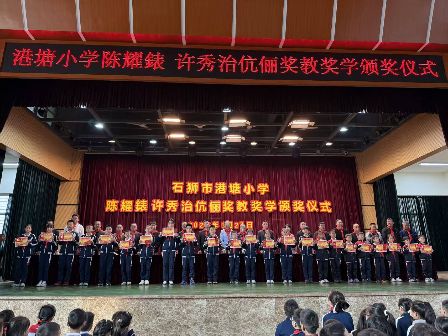 3月27日下午,灵秀镇港塘小学礼堂内暖意融融,年近八旬的旅美侨亲陈丽琼郭威信伉俪专门从美国返乡,参加以其父母名字命名的“陈耀錶许秀治伉俪奖教奖学金”颁奖仪式,向28名优秀师生颁发奖励金,弘扬尊师重教优良传统,并勉励老师们坚守初心、匠心育人,鼓励同学们勤学笃行、立志成才。