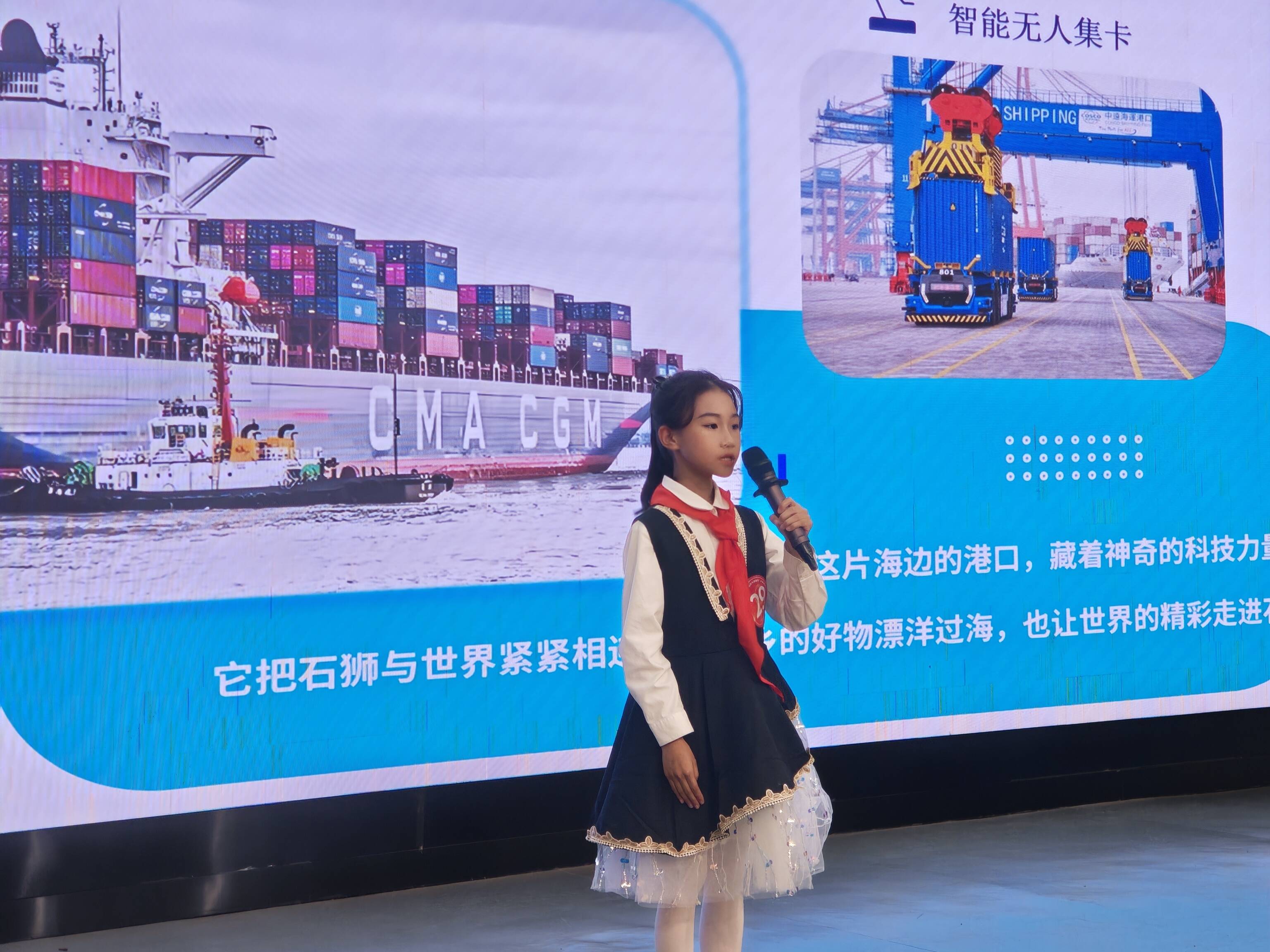 比赛现场,选手们有的以“古港新韵”为题追溯海上丝绸之路的历史印记,有的聚焦“智慧海洋”讲述智能船舶的研发突破,内容积极向上,结合实物、故事、人物展开讲述,重点突出、层次分明。为凸显“童言童语”特色,选手们均脱稿讲解,辅以简短PPT展示,语言生动活泼、富有感染力,将专业内容与儿童化表达巧妙融合,充分展现了新时代少先队员的良好形象。