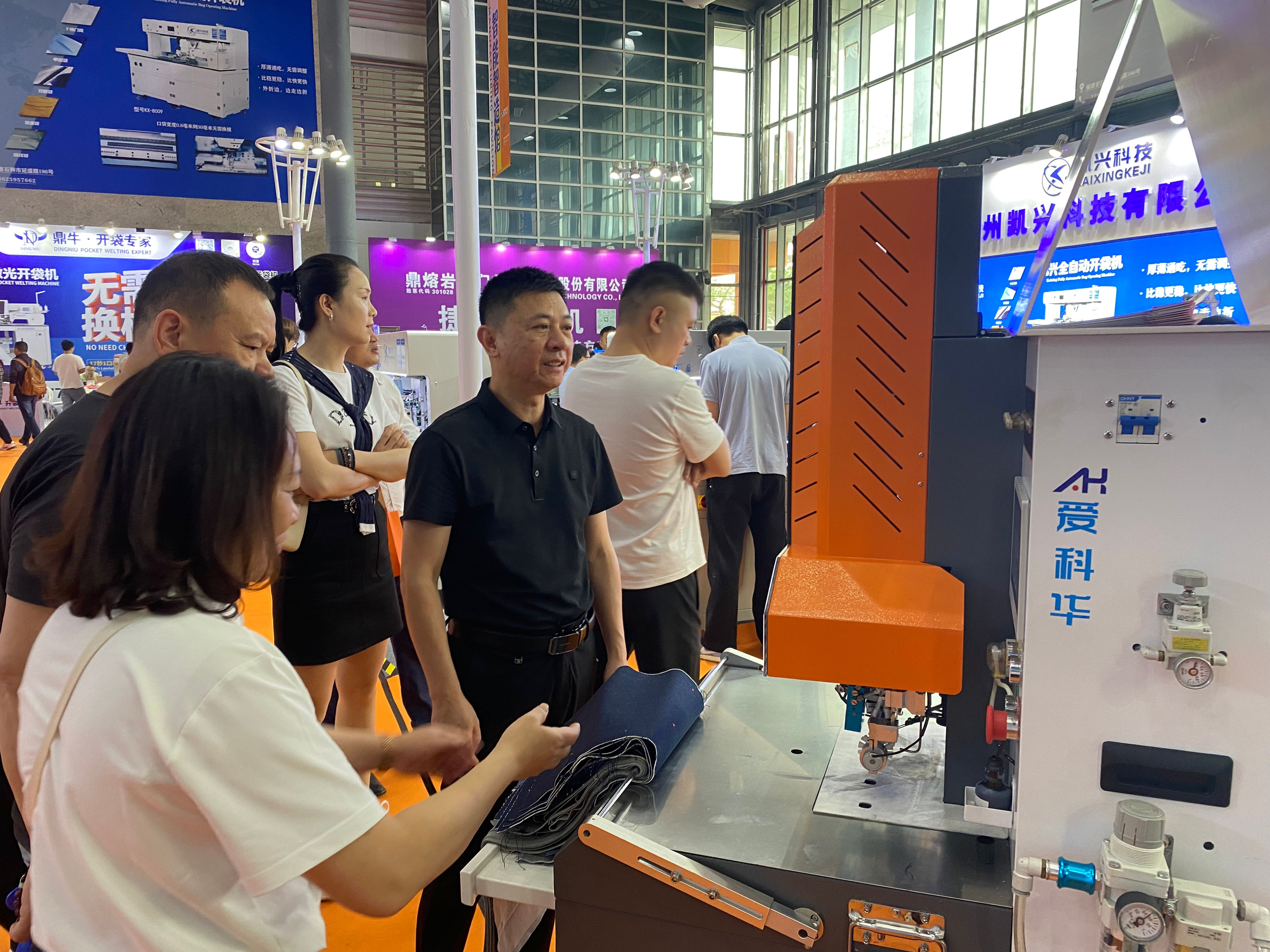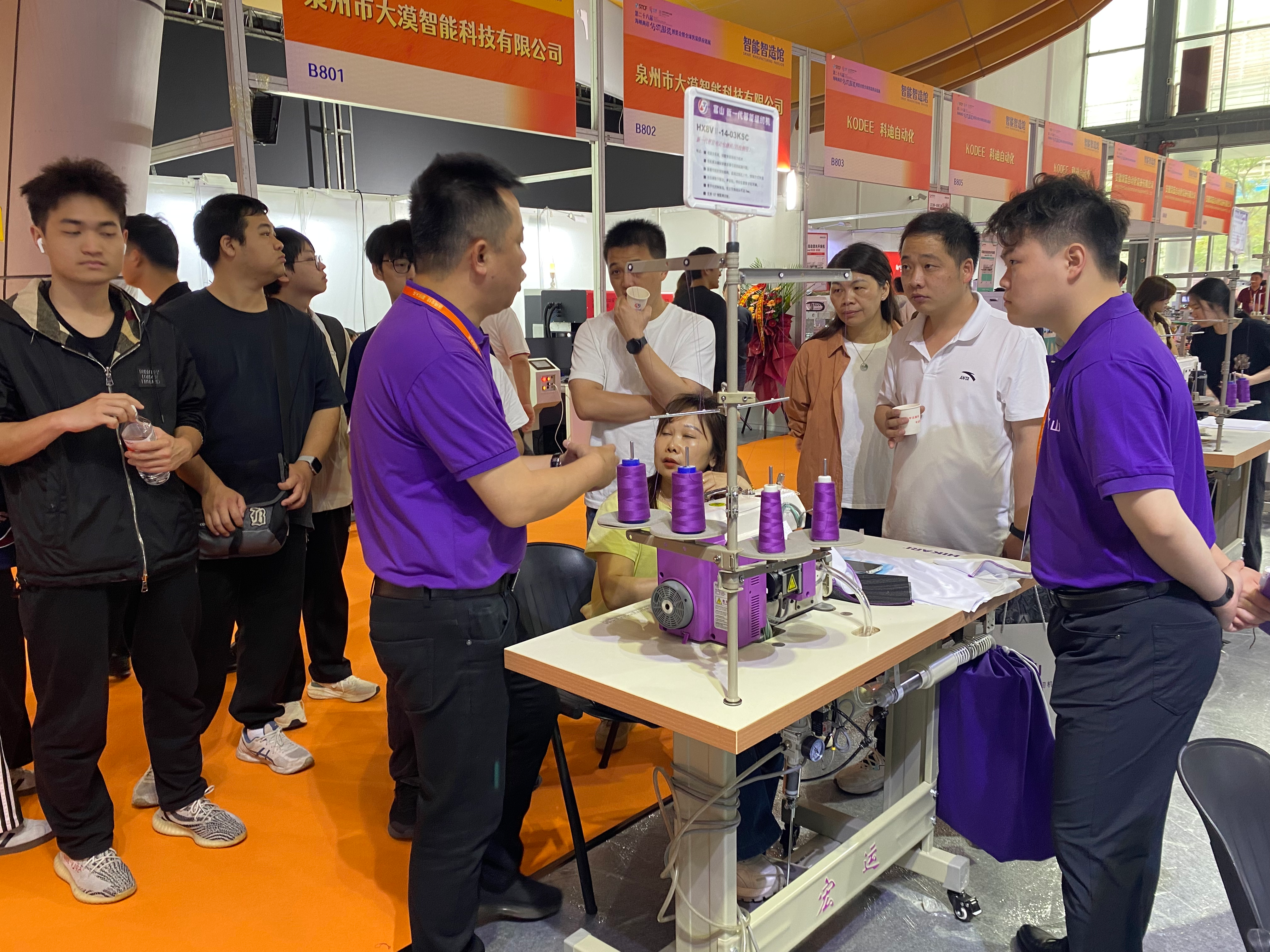 不远处的泉州凯兴科技有限公司展区同样热度不减,吸引众多专业人士驻足围观、试机体验。“此次我们联合浙江乐江机械有限公司,重点展示了备受市场关注的全新升级款无鸟巢大师平缝机、高端熨烫设备智能烫台和经典款裁剪机系列产品。”该公司相关负责人介绍,首次亮相海博会的无鸟巢大师平缝机,采用最新无鸟巢技术,彻底解决了起缝不上线、断线、有鸟巢(线团)等行业痛点。