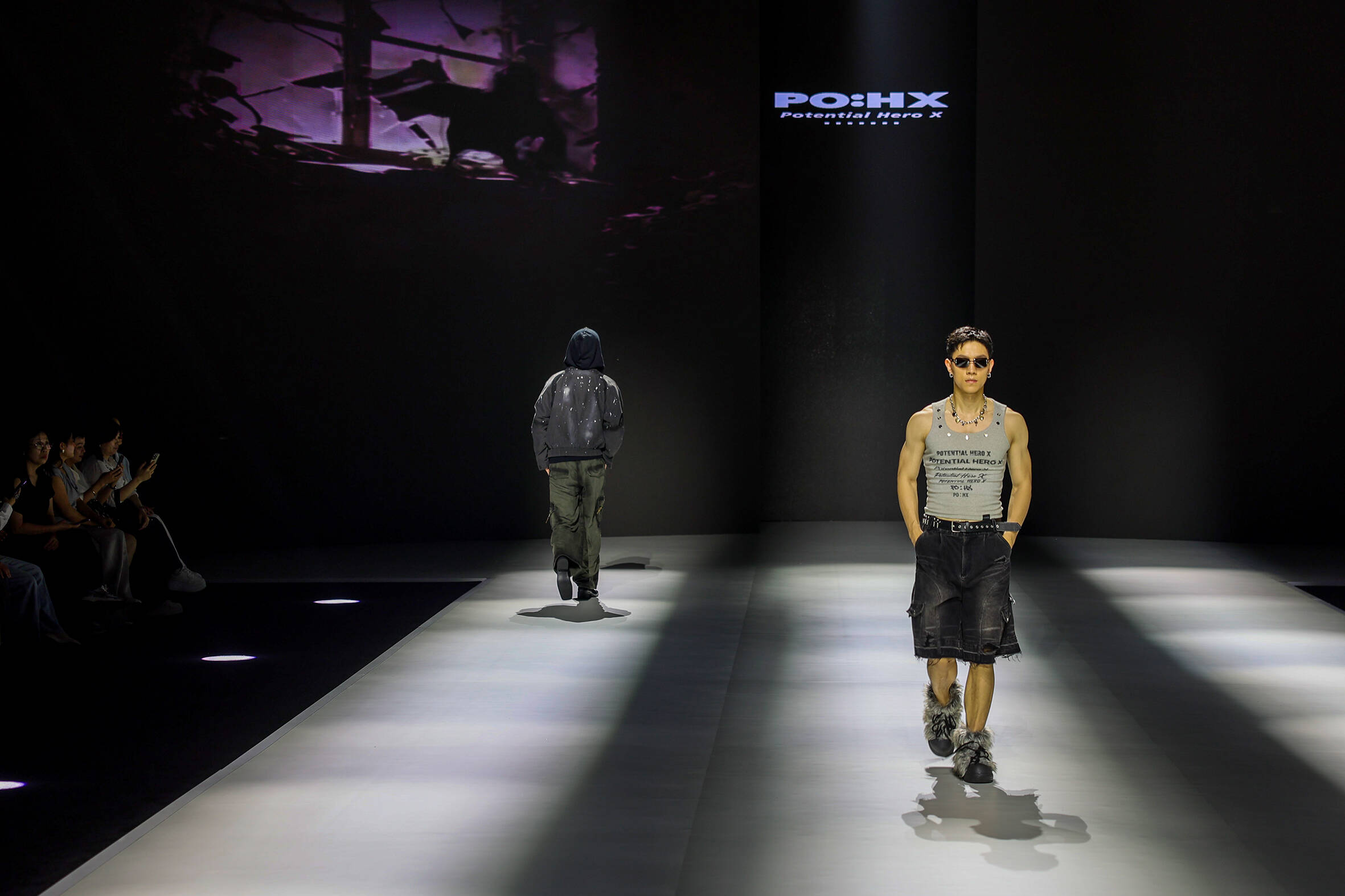 率先登场的PO:HX新锐设计师品牌面向Z世代青年,以前卫的生活态度为内核,将运动元素与时装巧妙融合,打造出兼具个性与实穿性的通勤时装。本次PO:HX2026初秋系列,以“野(Ma)一一时光废墟里,自成锋芒”为主题,以野马为精神图腾,致敬每一位在生活中奋力奔跑的人。