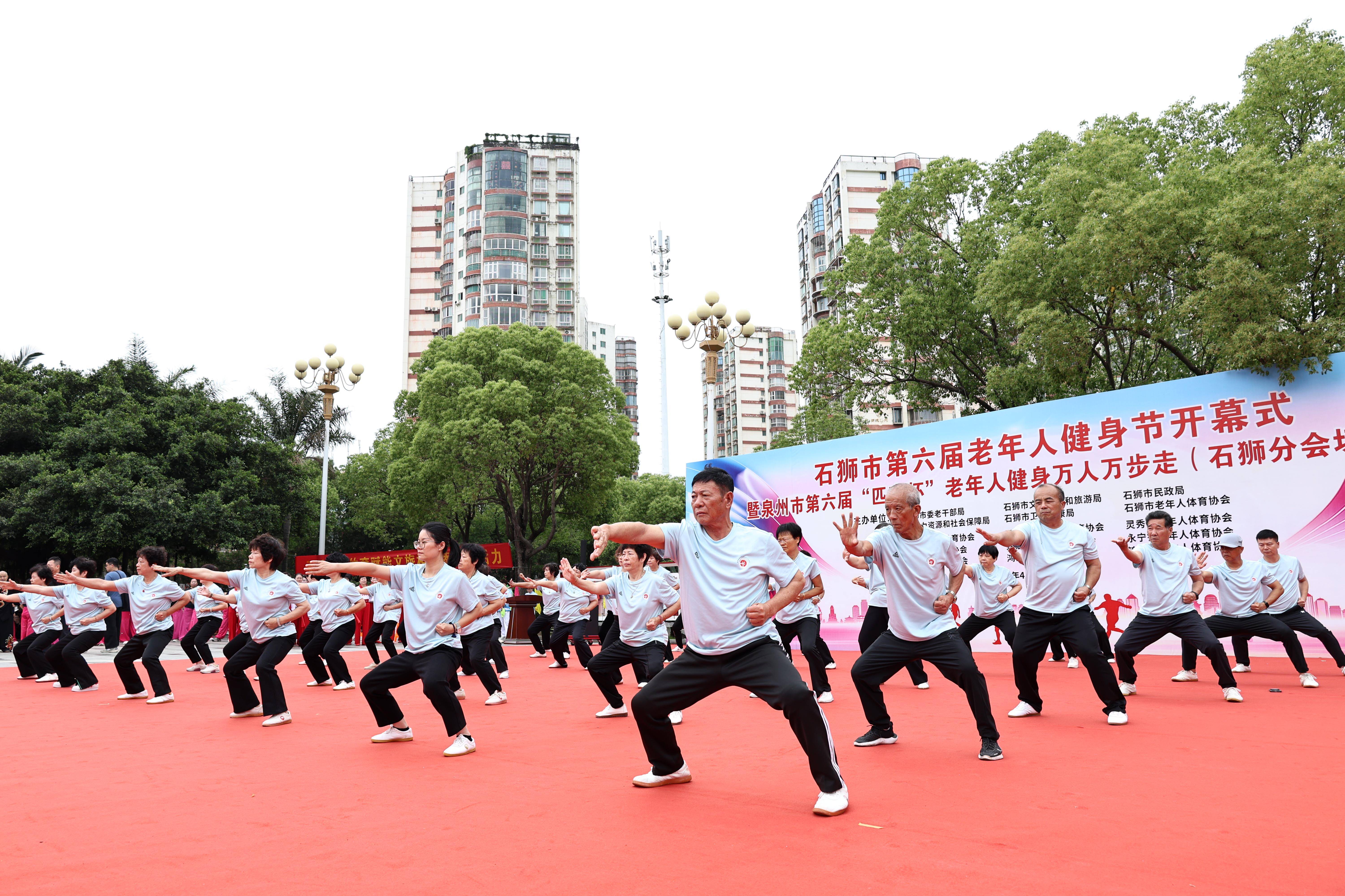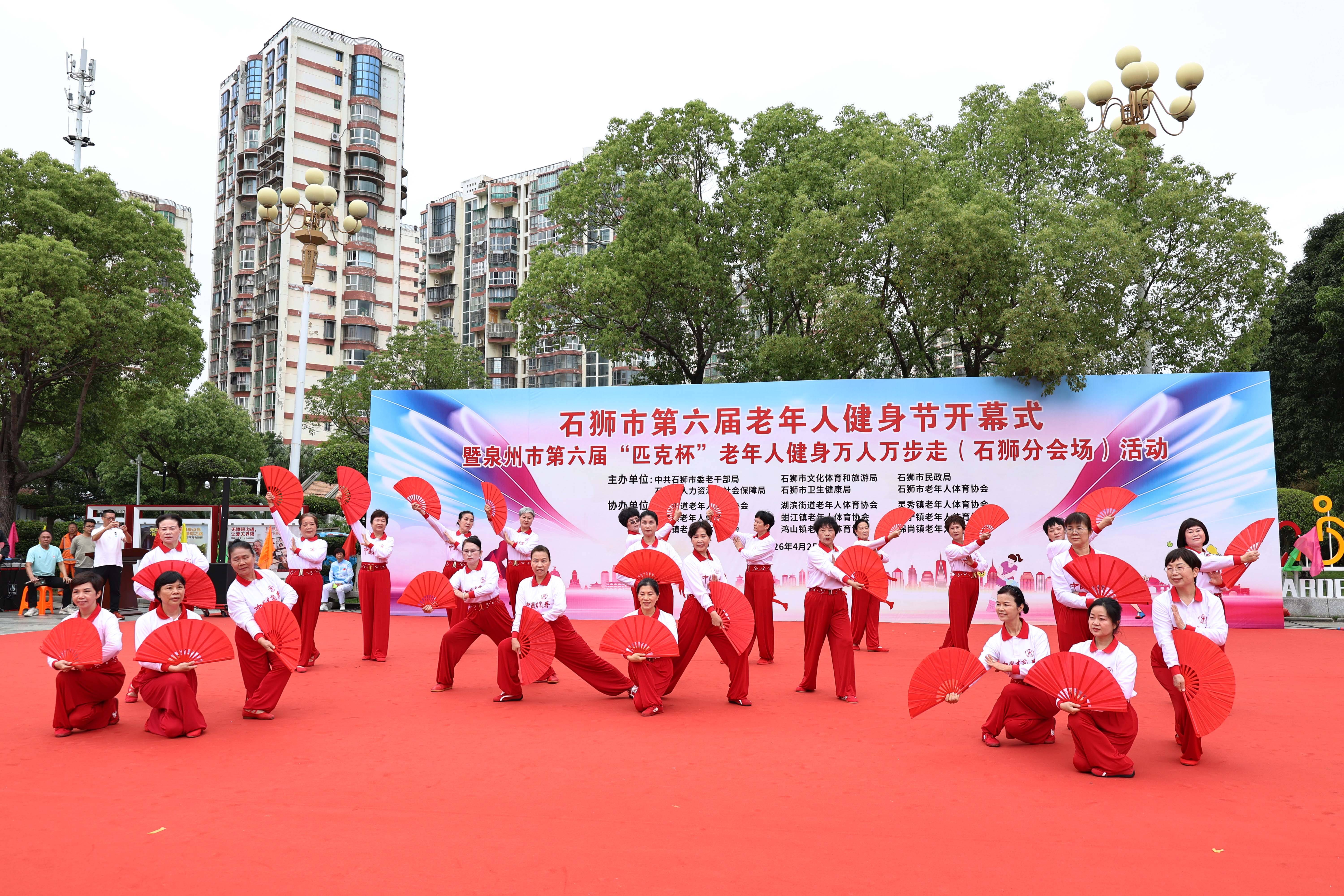 4月25日上午,石狮市第六届老年人健身节开幕式暨泉州市第六届“匹克杯”老年人健身万人万步走(石狮分会场)活动在龟湖公园举行。活动由石狮市委老干部局、市文体旅游局、市民政局、市人社局、市卫健局、市老体协联合主办,全市各镇(街道)老体协协办,共600余名老年朋友参加活动。