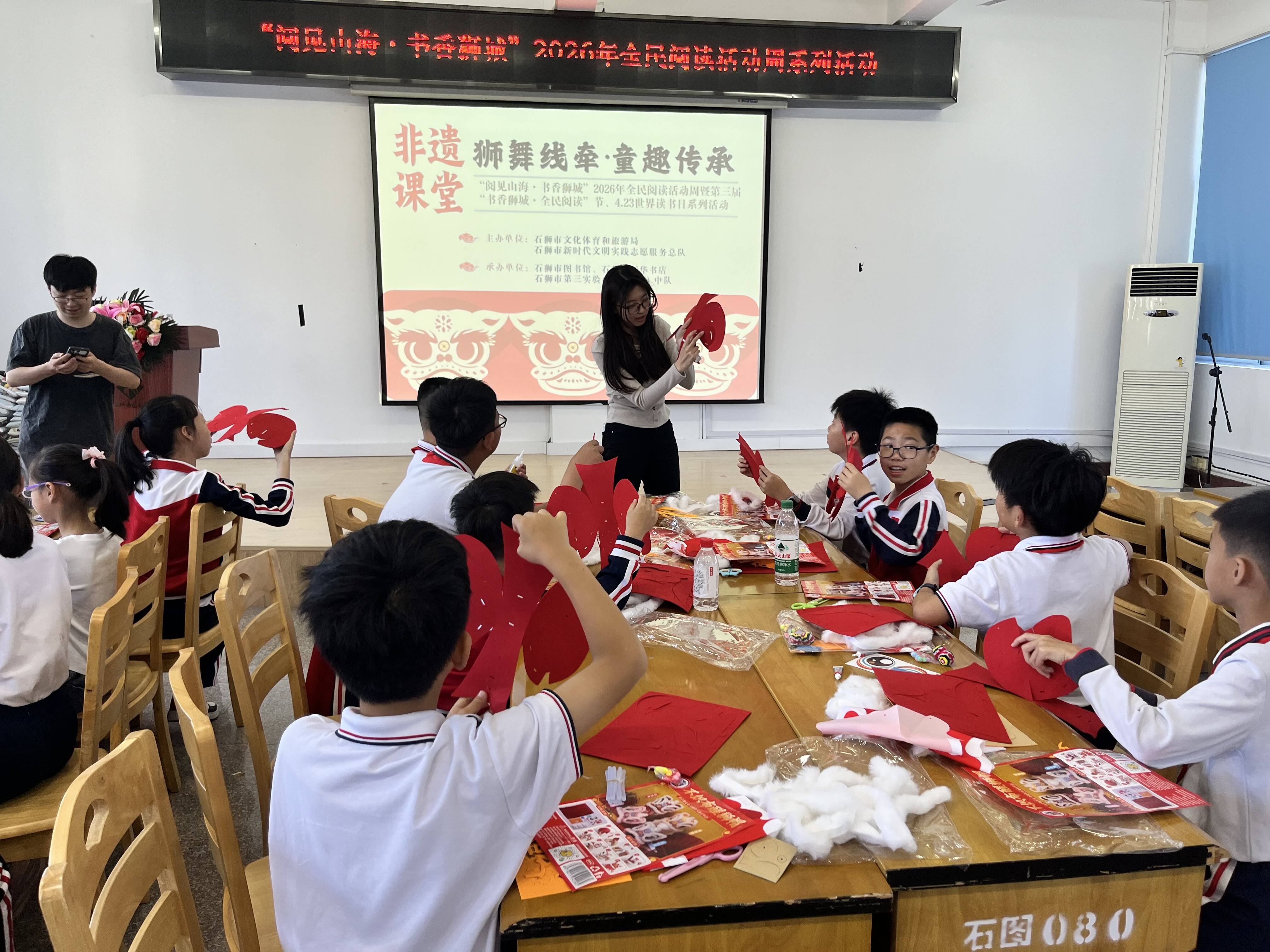 4月26日上午,作为“阅见山海·书香狮城”2026年全民阅读活动周系列活动之一,“狮舞线牵·童趣传承”非遗课堂在石狮市图书馆举行。