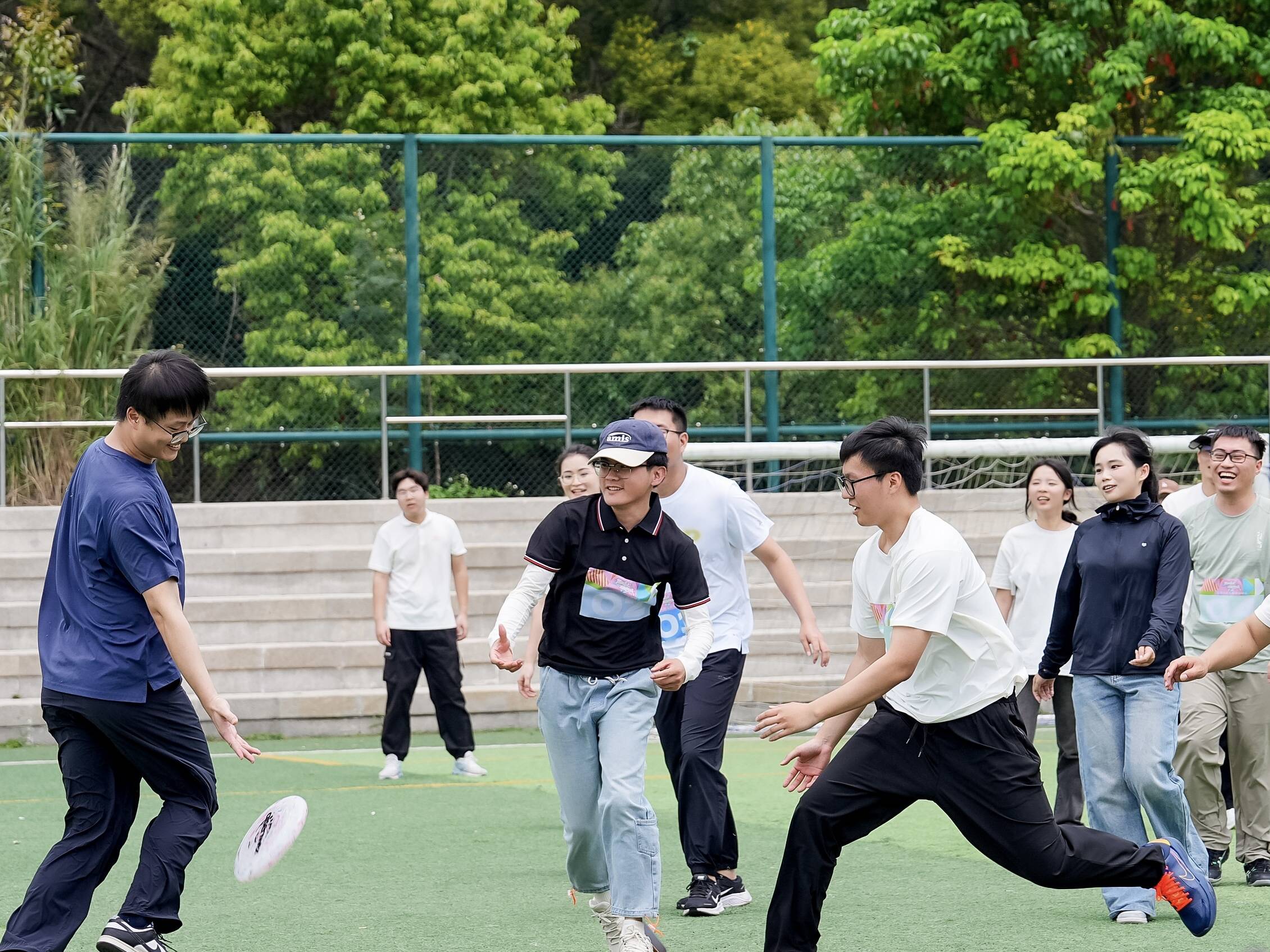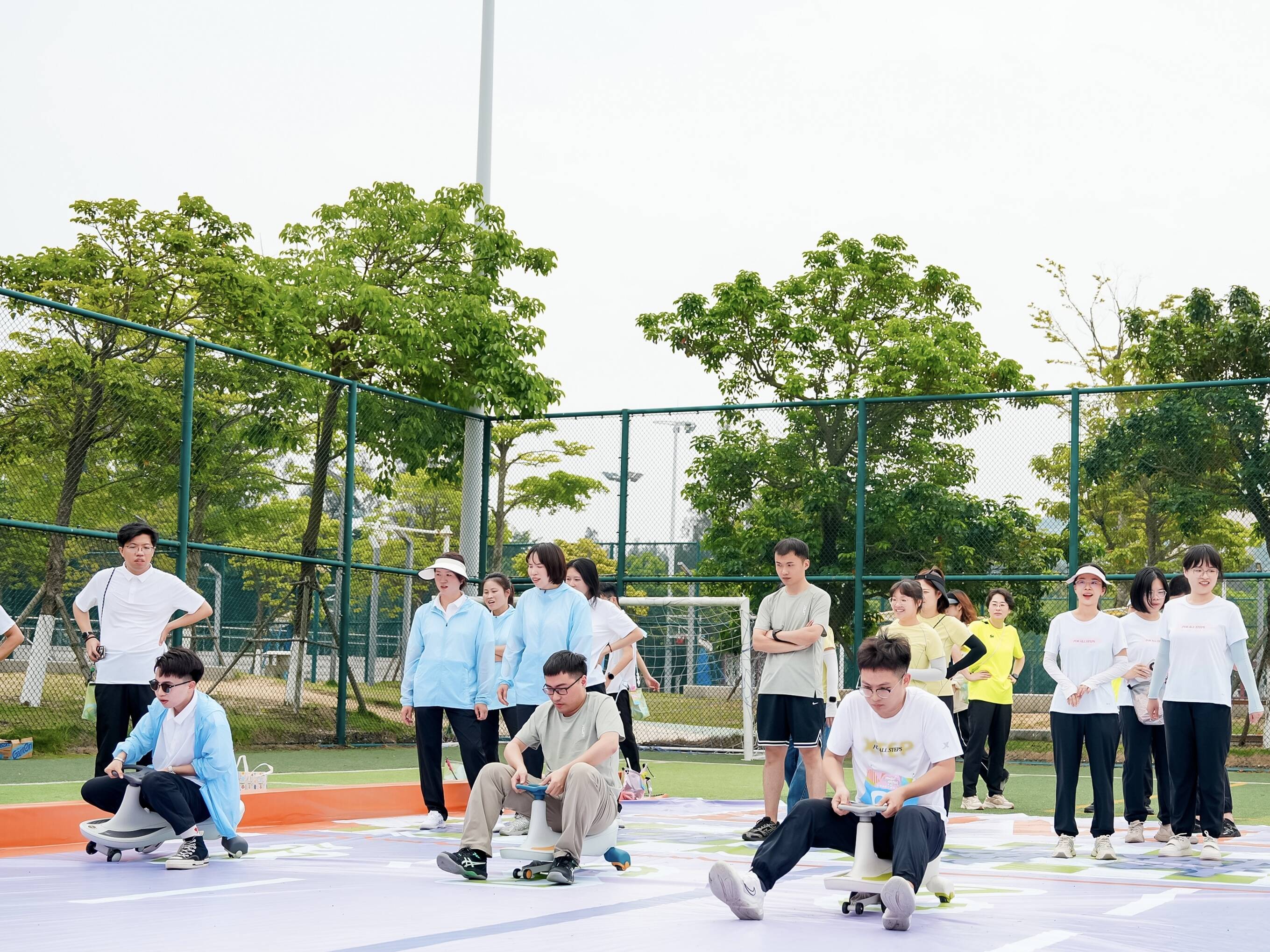 运动会设置了丰富多元的赛事环节,既有考验团队默契的巨型篮球、飞盘九宫格、扭扭车大比拼、多向拔河四个团队项目,也有飞盘个人赛,兼顾了竞技性、趣味性与参与性。赛场之上,欢呼呐喊声此起彼伏,参赛队员们奋勇争先,在团队项目中彼此信任、默契配合,在个人项目中全力冲刺、挑战自我,每一场比拼都洋溢着活力与欢笑。