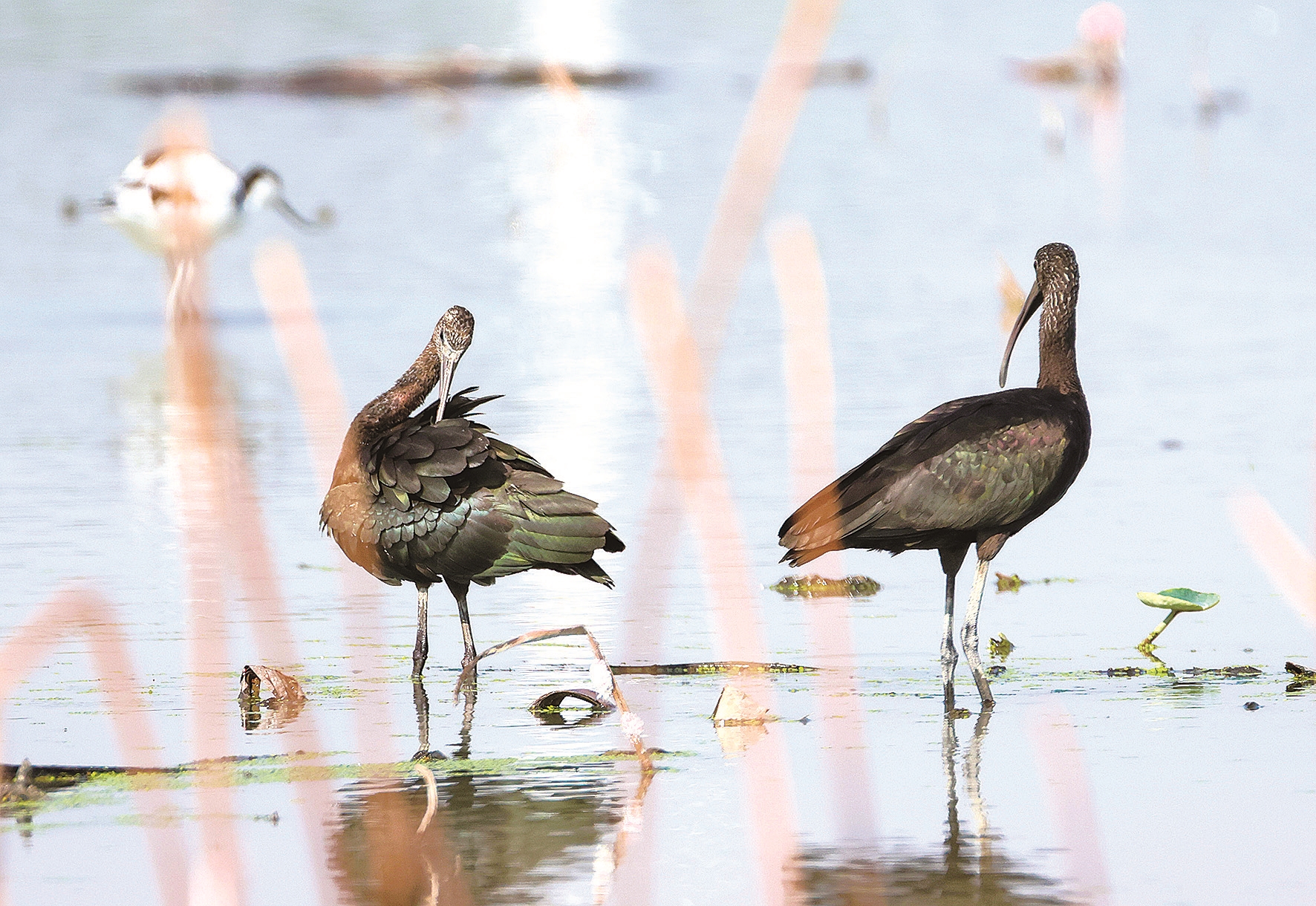 国家一级保护动物彩鹮在石狮湿地公园“过中秋”(杨思盾/图)