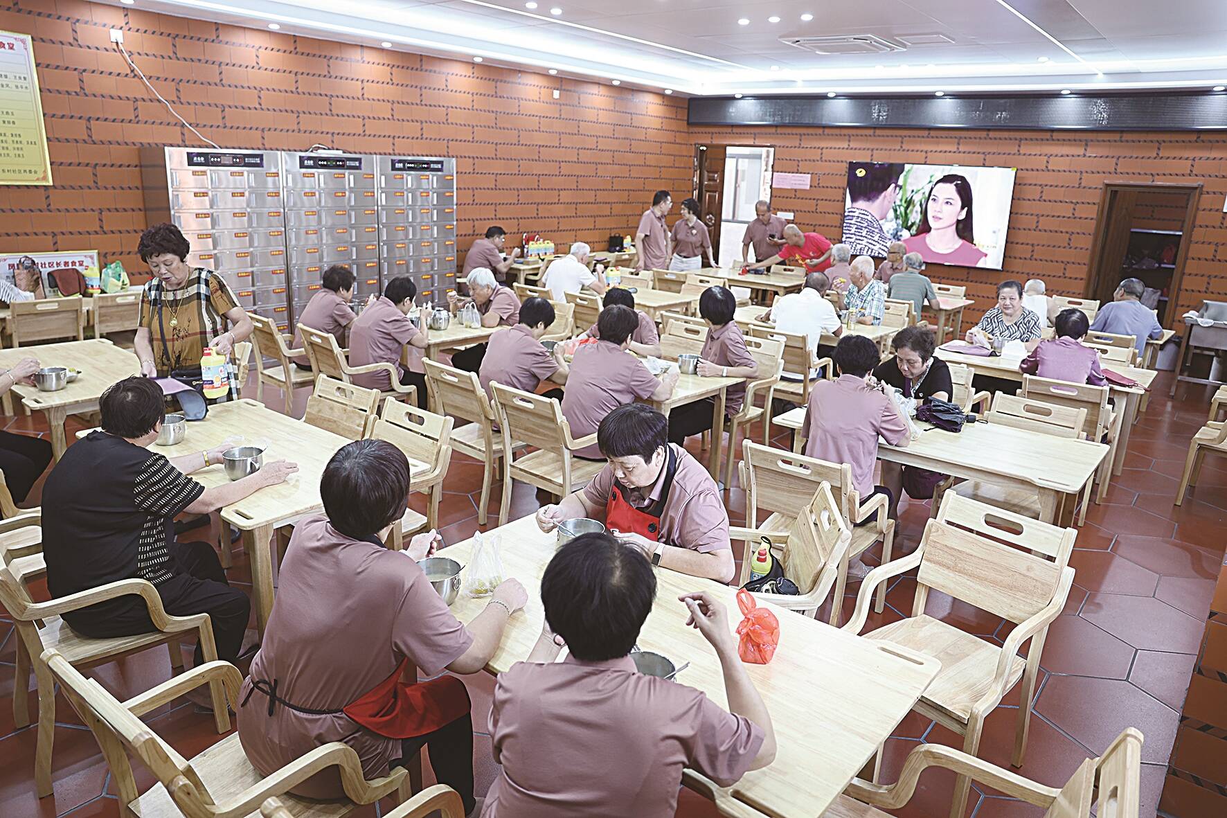 老人们在东村社区长者食堂就餐
