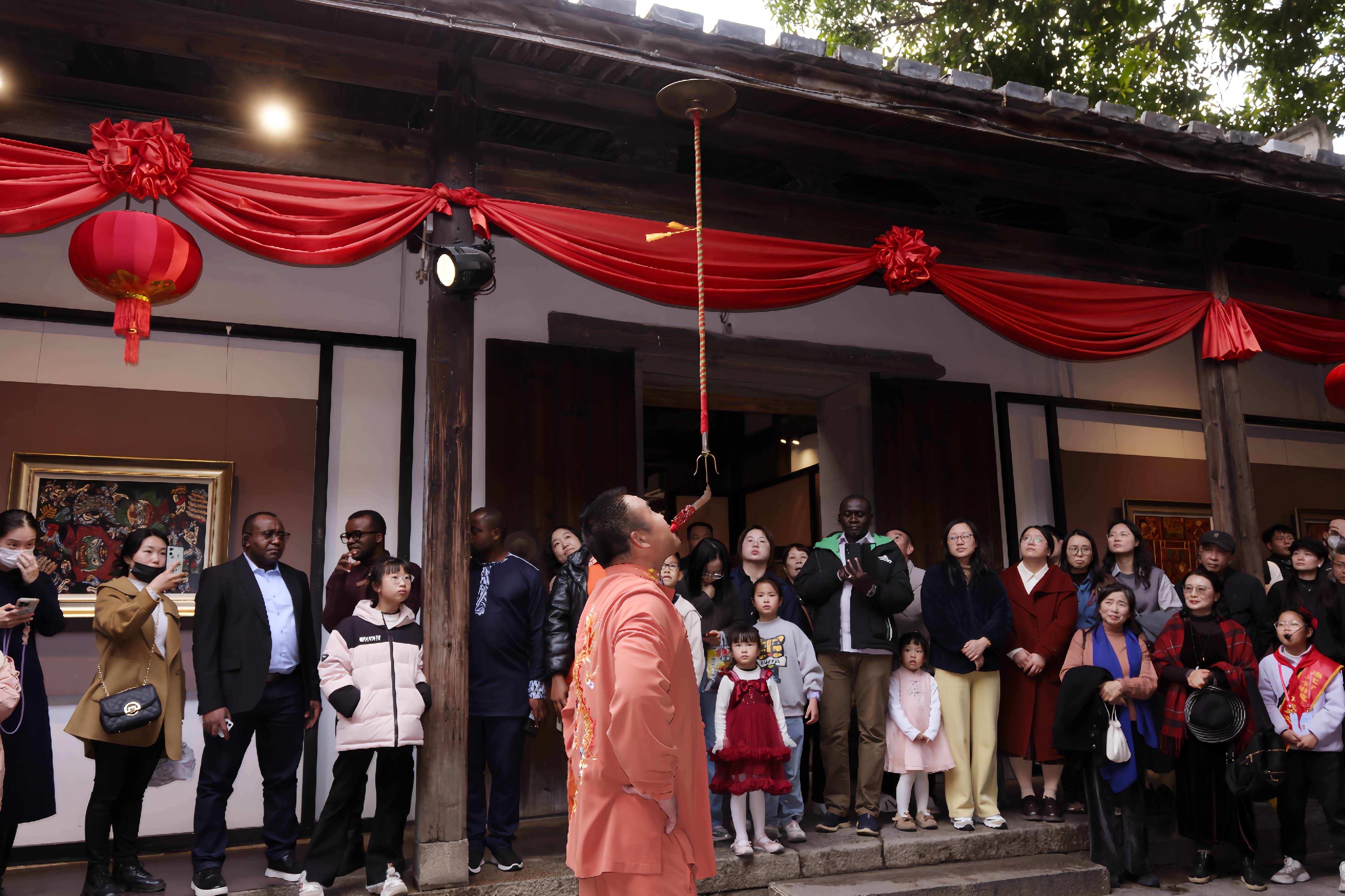 活动现场,展演台前人头攒动,国内外游客纷纷驻足,争相一睹非遗风采。伴随着明快的节奏,邱培机手持铙钹登场。有着30年技艺功底的他,将“转钹”“飞钹”“绕钹”等数种招式演绎得行云流水,高难度表演将现场气氛推向高潮。每一个精彩瞬间,都引来观众阵阵惊呼与热烈掌声,不少外国友人纷纷举起相机记录,连连赞叹非遗技艺的神奇。