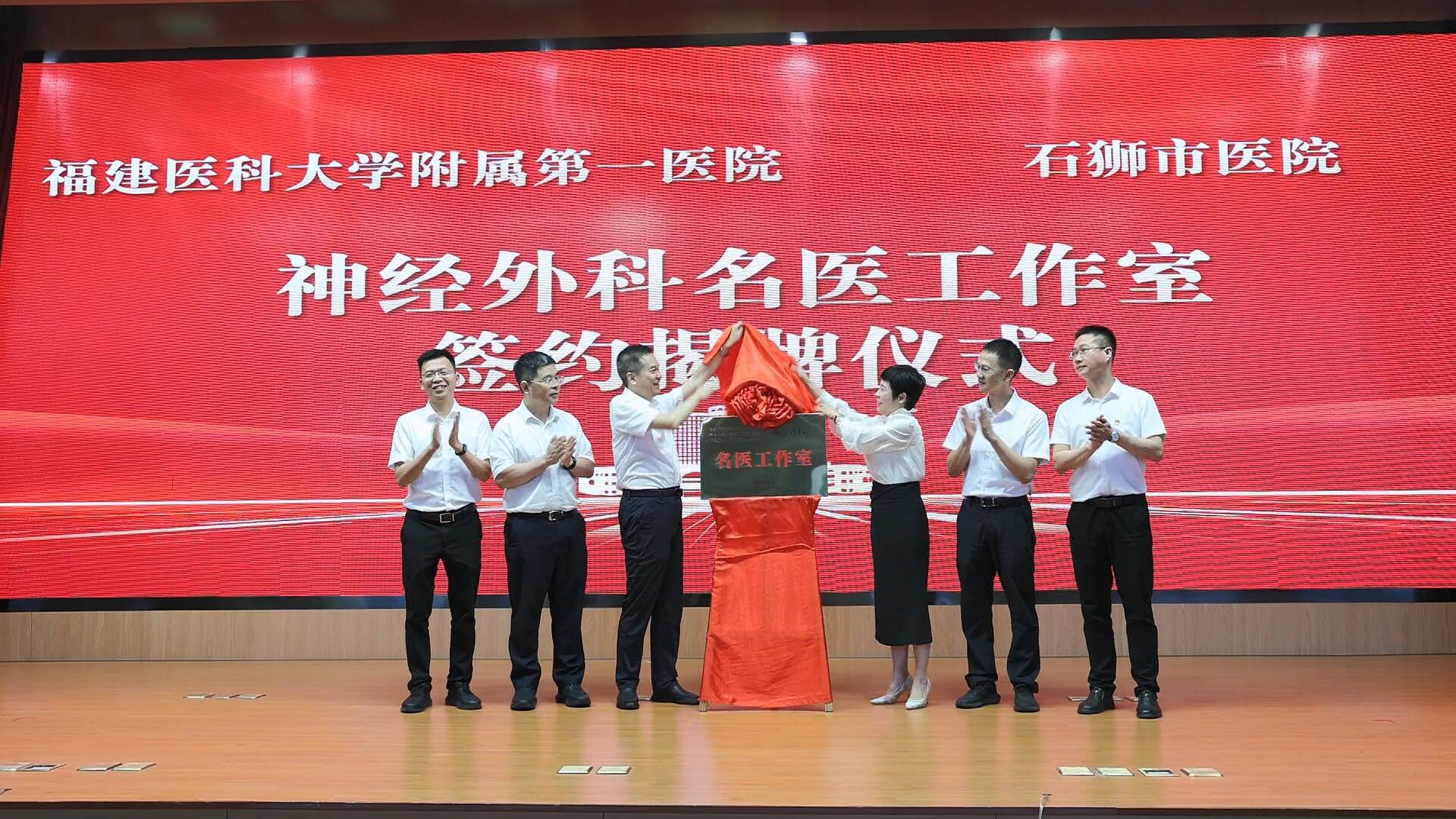 10月12日,福建医科大学附属第一医院与石狮市医院举行“神经外科名医工作室”揭牌仪式。福建医科大学附属第一医院院长康德智,石狮市政府副市长黄明瑄,石狮市卫健局、福建医科大学附属第一医院、福建医科大学附属第二医院、泉州市第一医院、石狮市医院相关负责人和专家,福医大附属第一医院医共体成员单位代表参加活动。