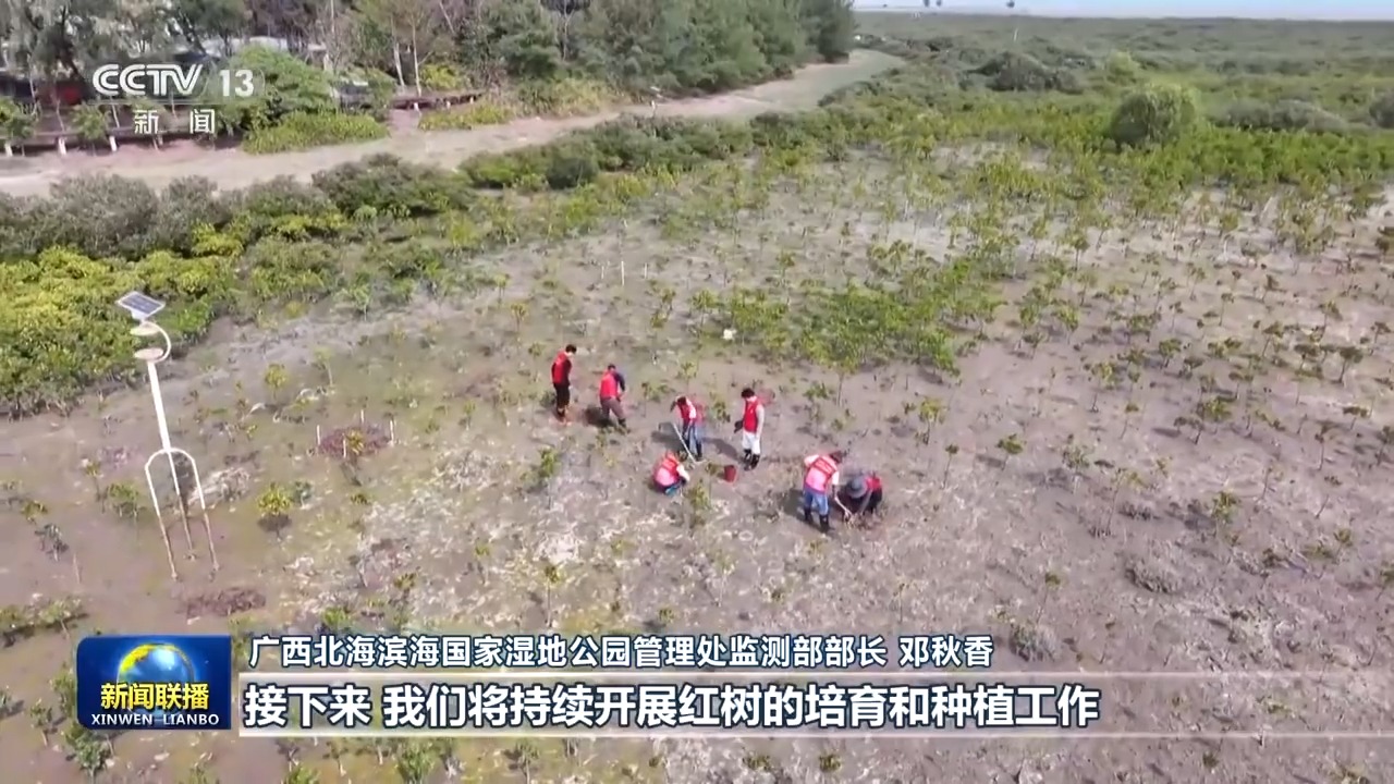 广西北海滨海国家湿地公园管理处监测部部长 邓秋香:习近平总书记强调,植树造林是生态文明建设的重要一环。接下来,我们将持续开展红树的培育和种植工作,加大红树林保护修复力度,同时加大对红树林保护的宣传力度,让更多的社会力量一起加入,共同守护这片“海上森林”。