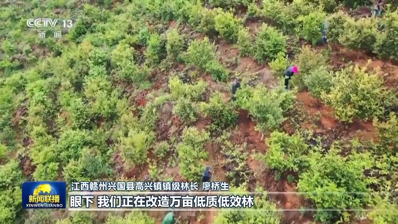江西赣州兴国县高兴镇镇级林长 廖桥生:习近平总书记强调,要更加注重“利民”。眼下,我们正在改造万亩低质低效林,补植油茶树苗,拓展林草就业增收空间。我们要响应总书记的号召,严格落实好林长制,加强对乡镇森林资源的保护和管理,用实际行动扩绿兴绿护绿。