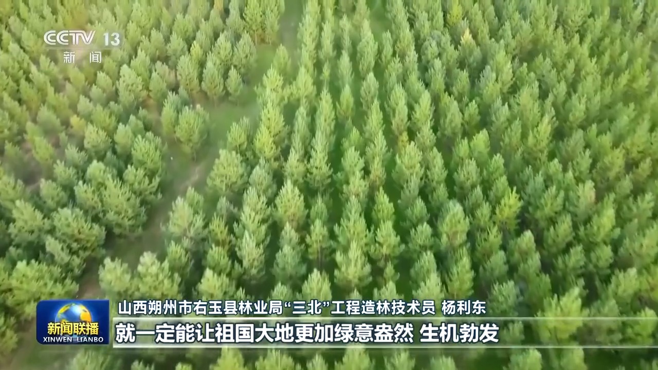 山西朔州市右玉县林业局“三北”工程造林技术员 杨利东:习近平总书记指出,义务植树是全民行动,要一代接着一代干下去。今年我们将完成退化林和退化灌木修复3万余亩,巩固防沙治沙成果1万余亩,只要我们积极参与造林绿化、一代接着一代干,就一定能让祖国大地更加绿意盎然、生机勃发。