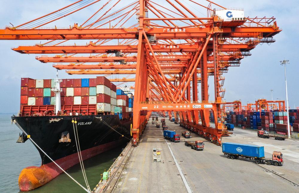 △广西钦州港是北部湾港的组成部分,也是中国西南地区通往东盟的重要出海口。
