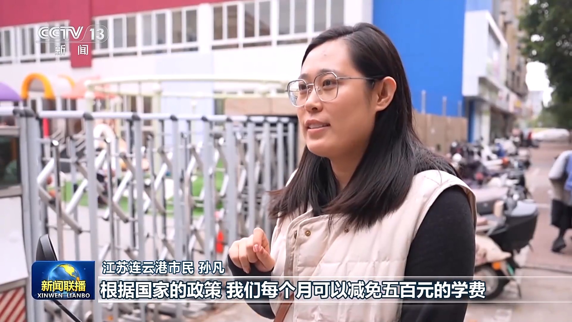 江苏连云港市民 孙凡:根据国家的政策,我们每个月可以减免五百元的学费。我觉得特别满足,而且觉得特别开心。